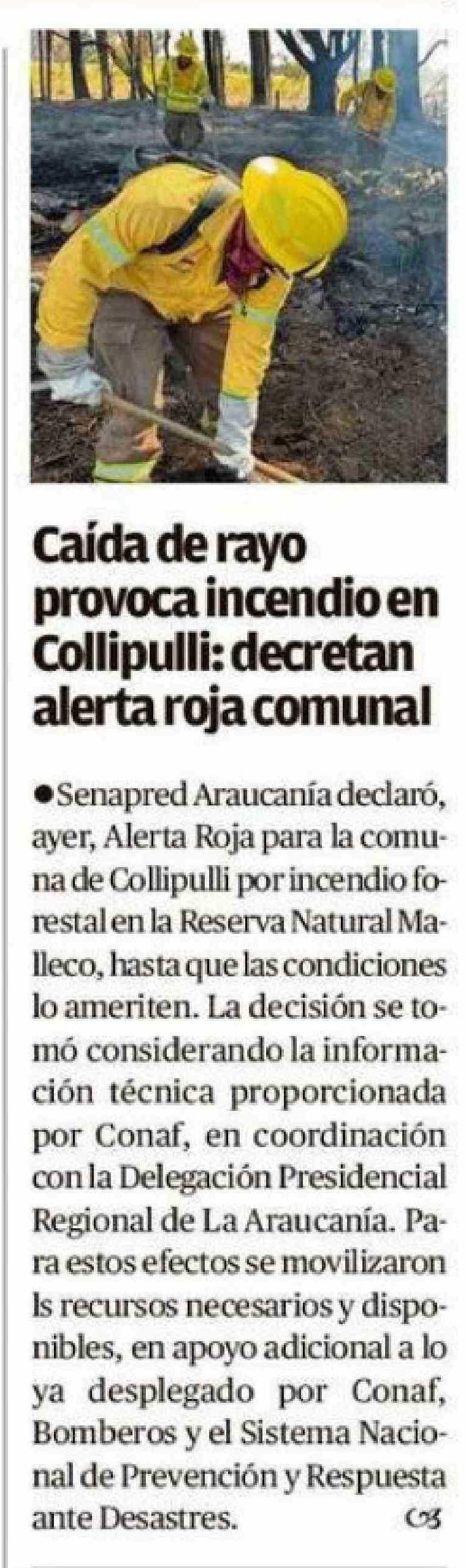 Caída de rayo provoca incendio en Collipulli: decretan alerta roja comunal