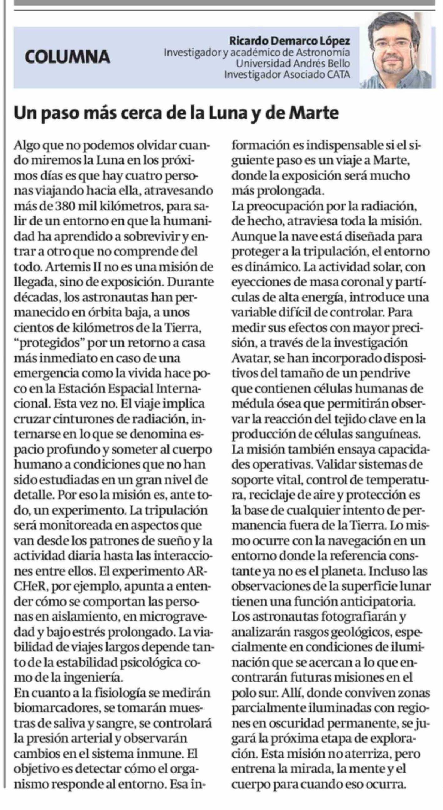 Columnas de Opinión: Un paso más cerca de la Luna y de Marte