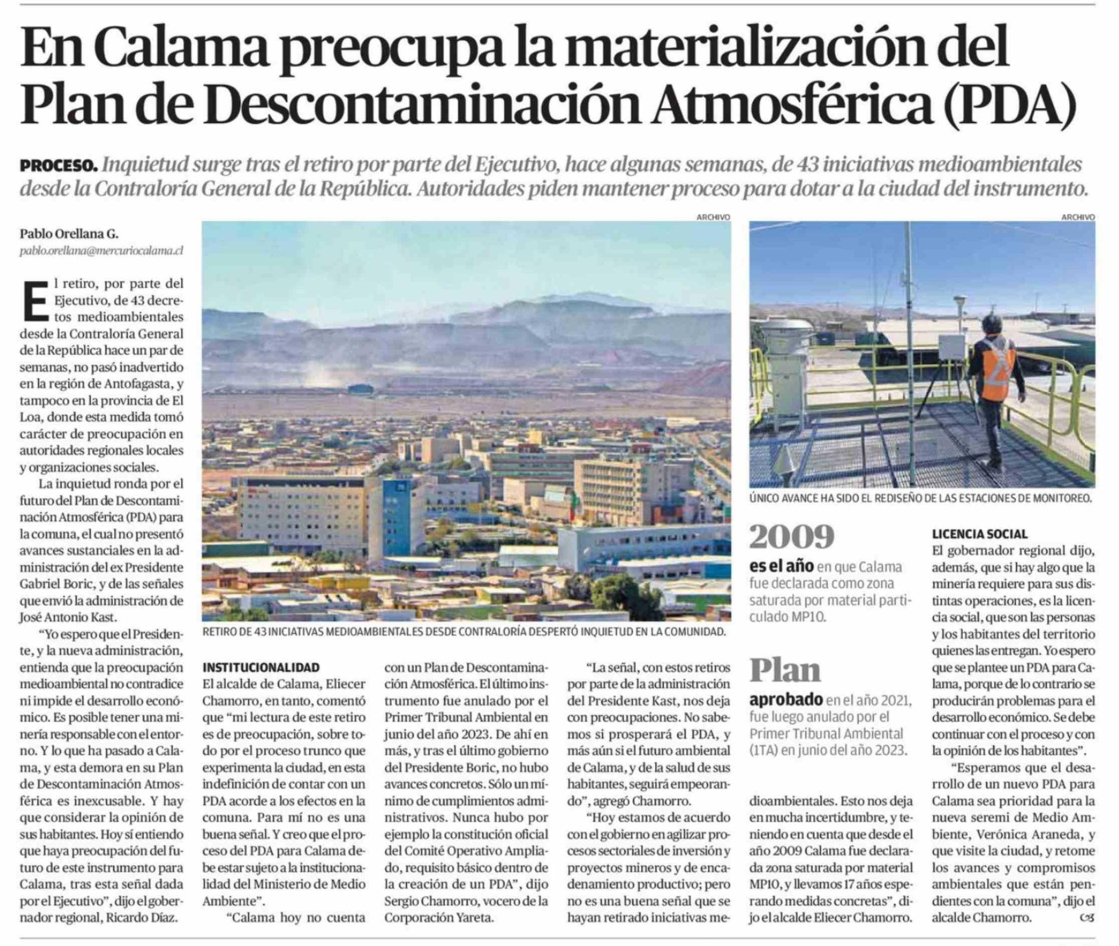 En Calama preocupa la materialización del Plan de Descontaminación Atmosférica (PDA)