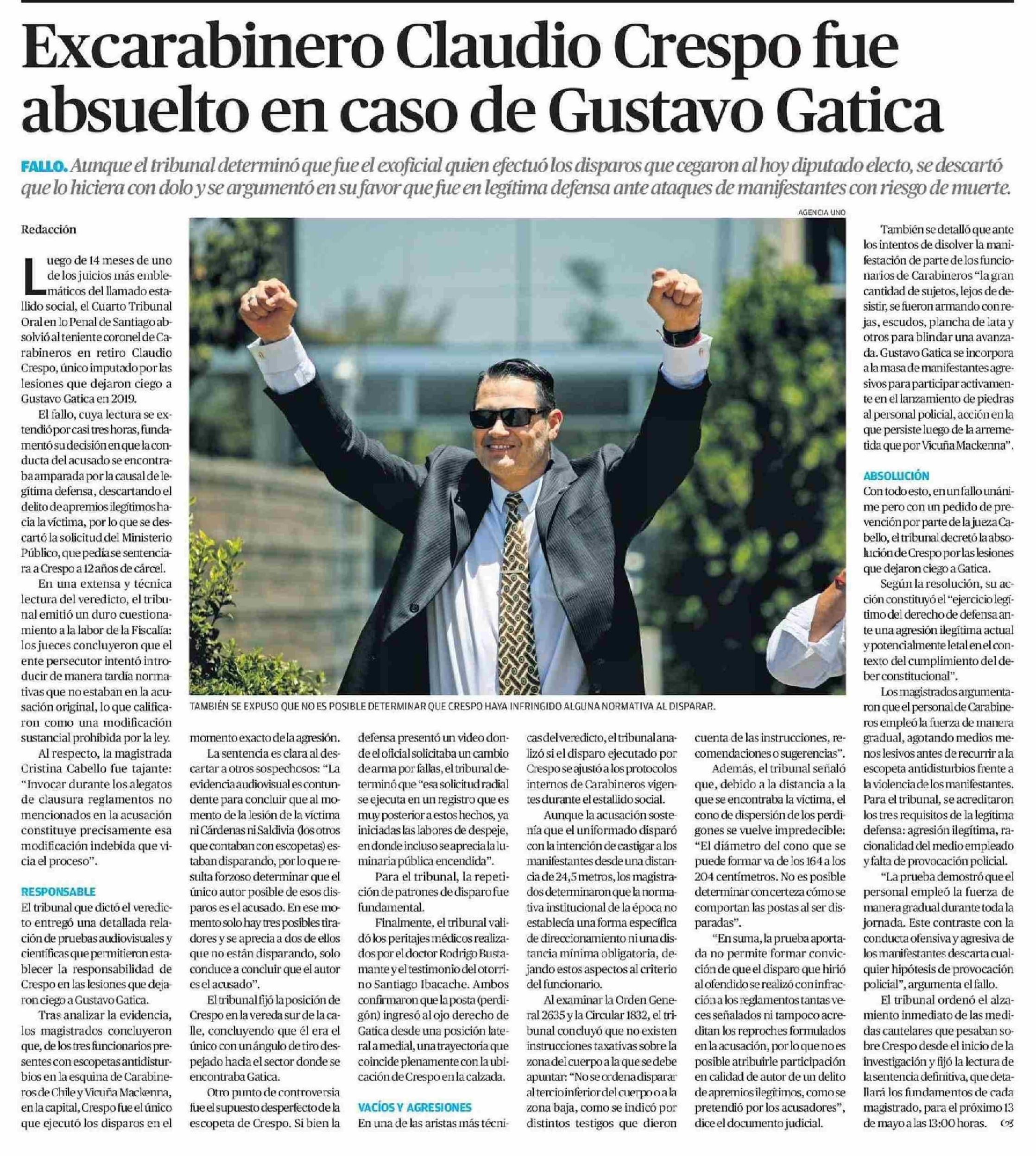 Excarabinero Claudio Crespo fue absuelto en caso de Gustavo Gatica