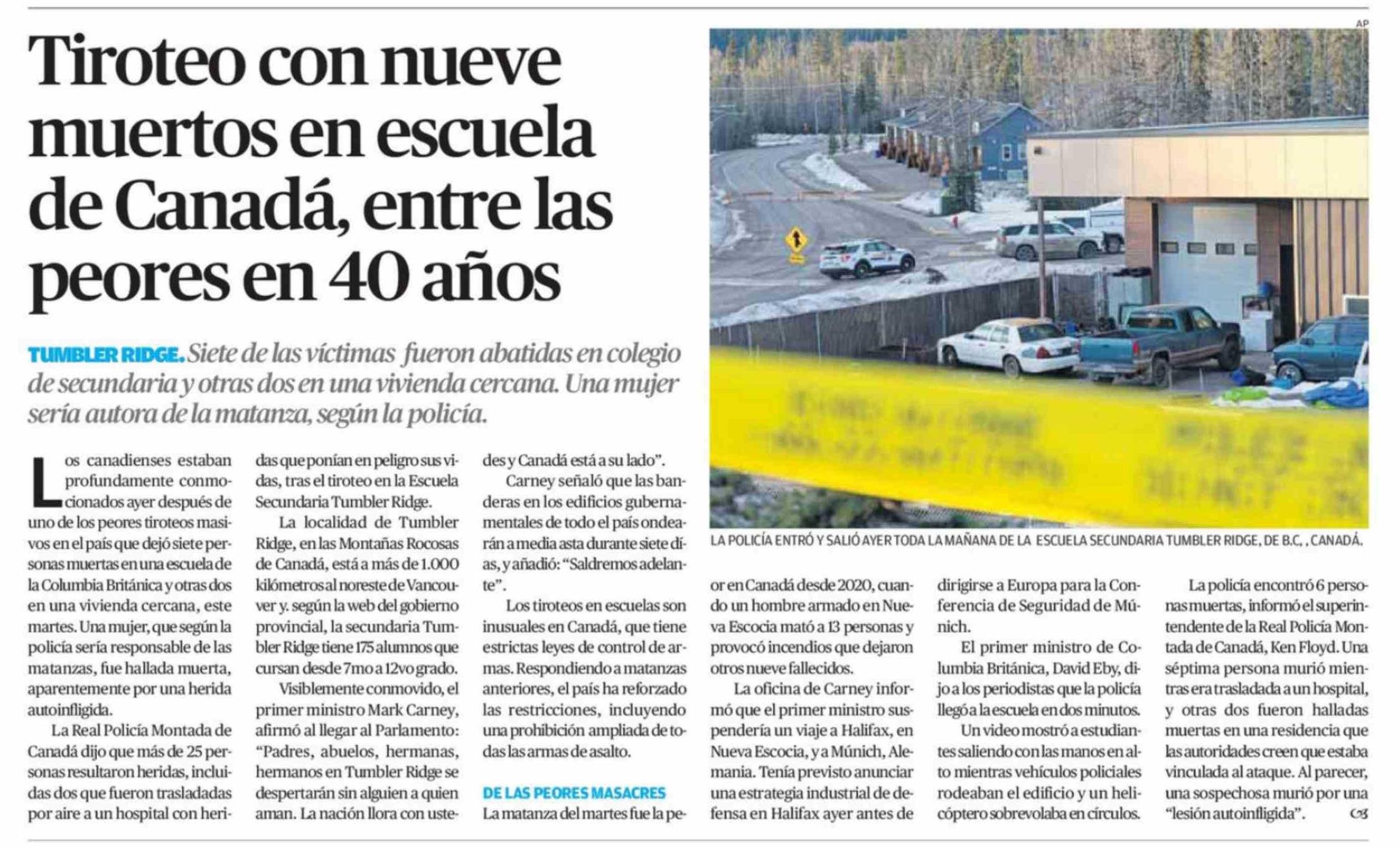Tiroteo con nueve muertos en escuela de Canadá, entre las peores en 40 años