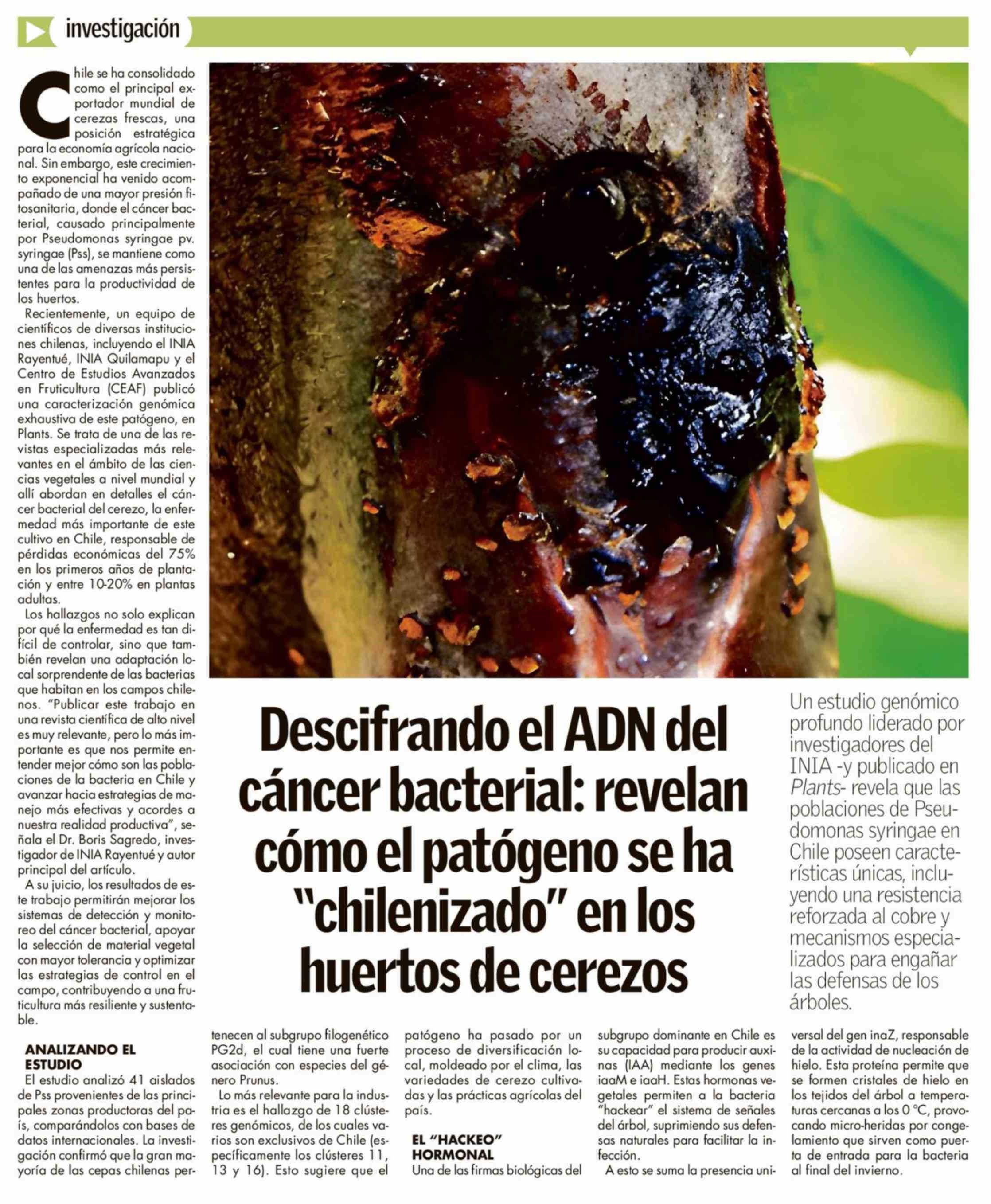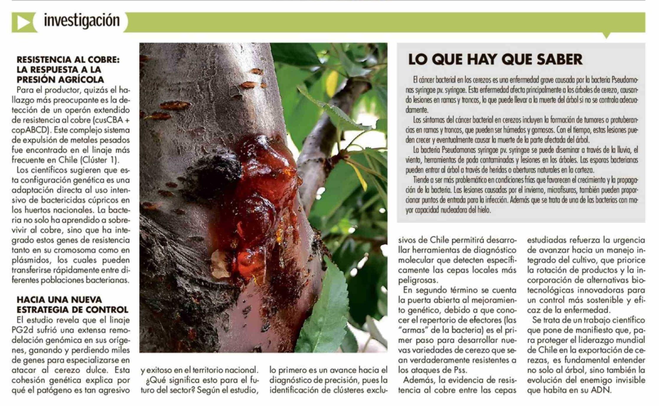 | Título: | Descifrando el ADN del cáncer bacterial: revelan cómo el patógeno se ha "chilenizado" en los huertos de cerezos |