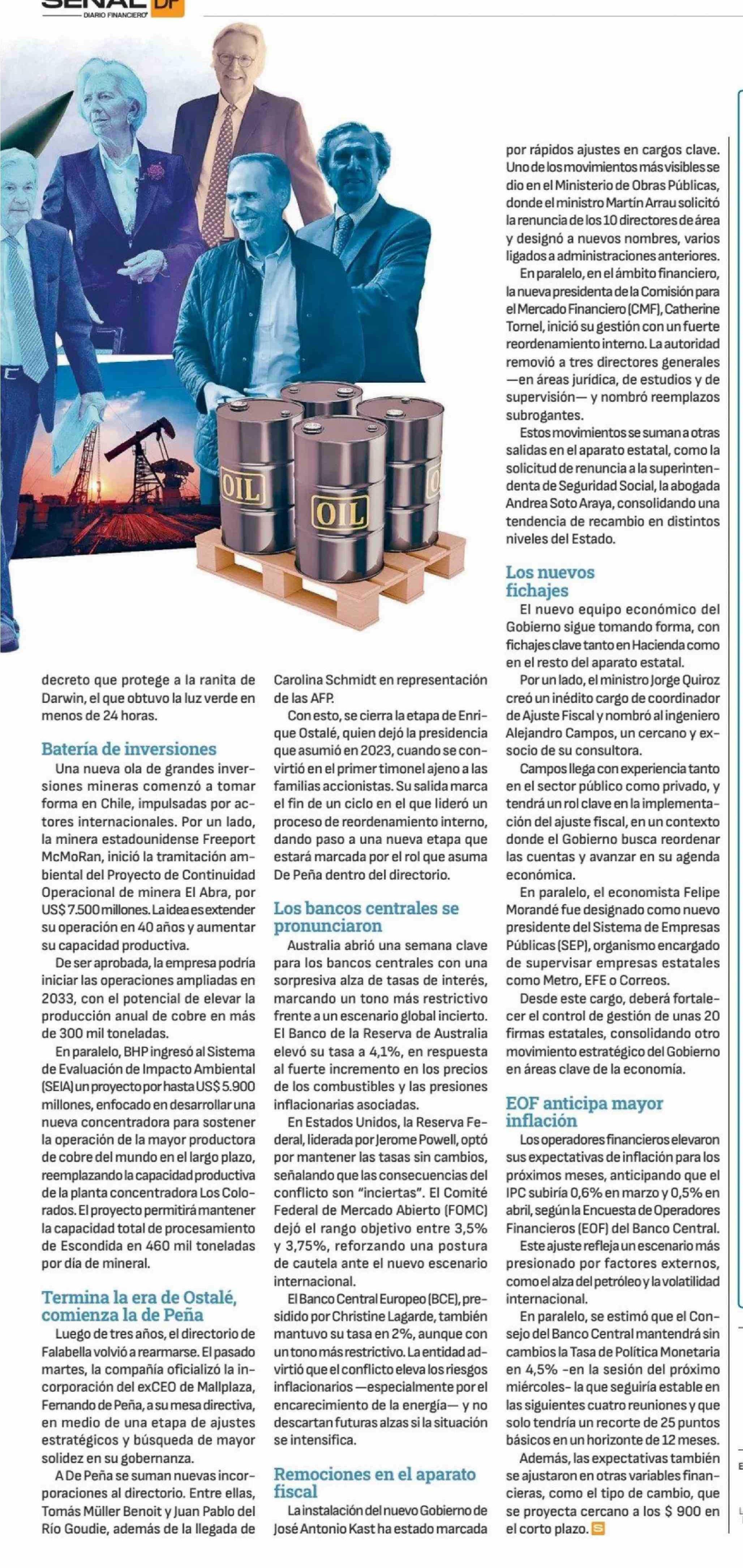 Los anuncios de Quiroz, el petróleo y las inversiones mineras se tomaron la agenda