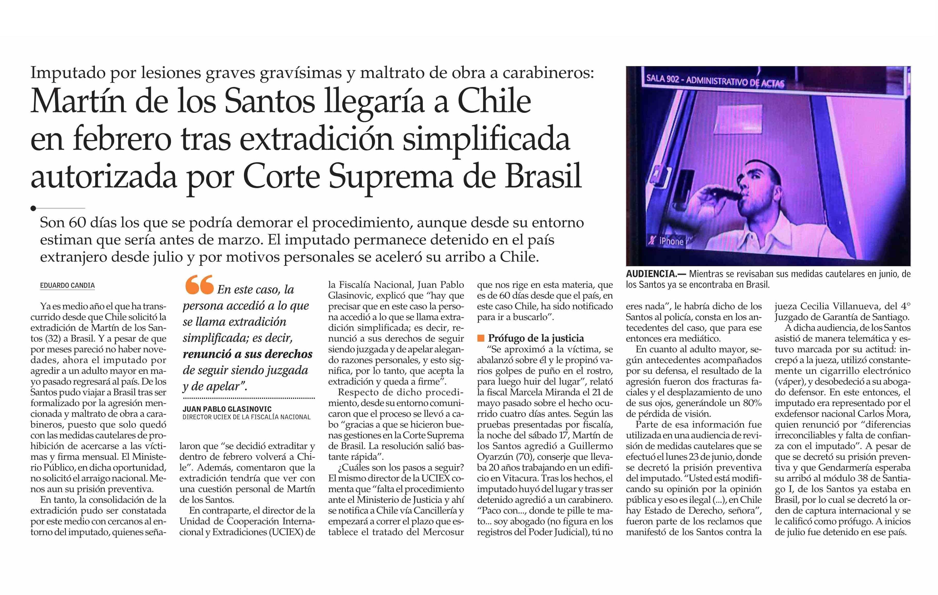Martín de los Santos llegaría a Chile en febrero tras extradición simplificada autorizada por Corte Suprema de Brasil