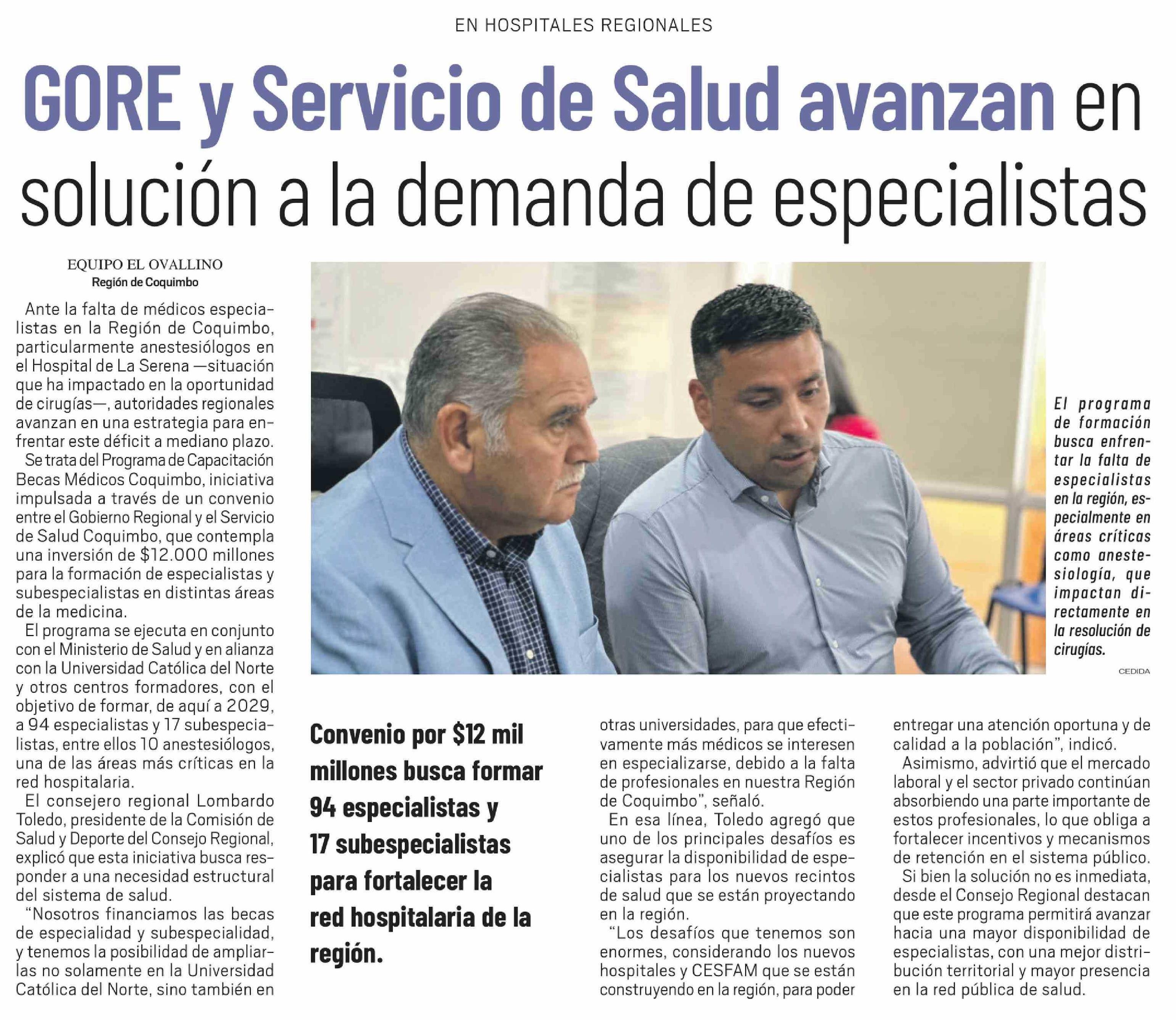 GORE y Servicio de Salud avanzan en solución a la demanda de especialistas