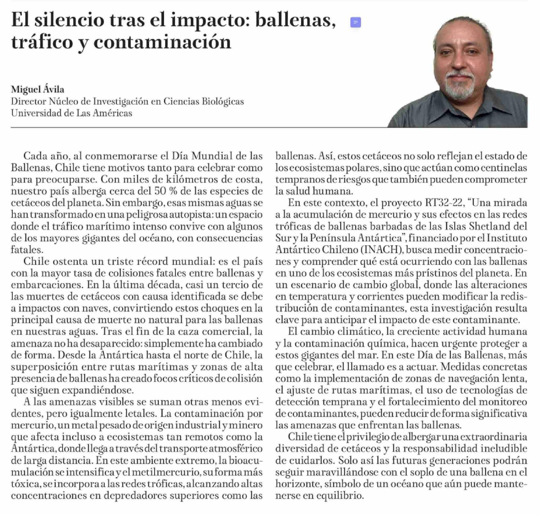 Columnas de Opinión: El silencio tras el impacto: ballenas, tráfico y contaminación