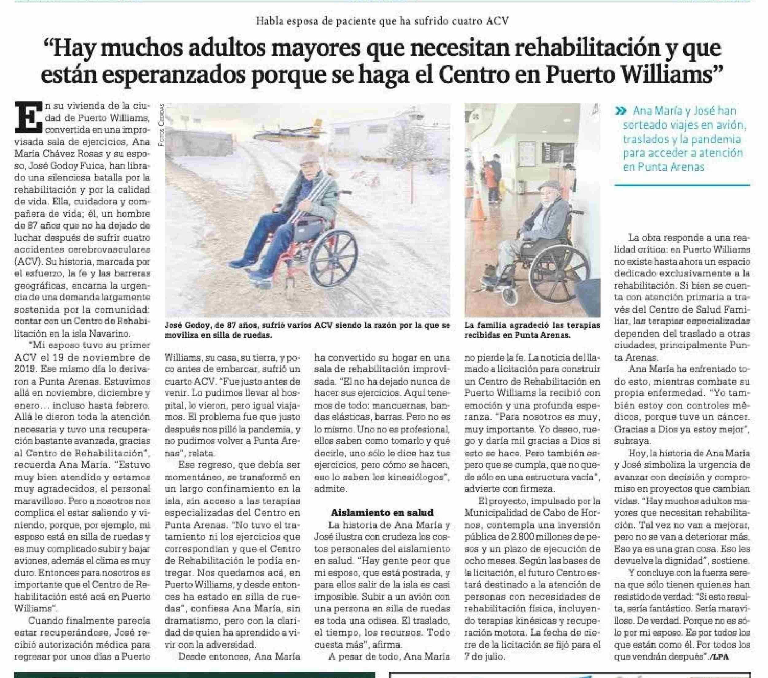 | Título: | "Hay muchos adultos mayores que necesitan rehabilitación y que están esperanzados porque se haga el Centro en Puerto Williams" |