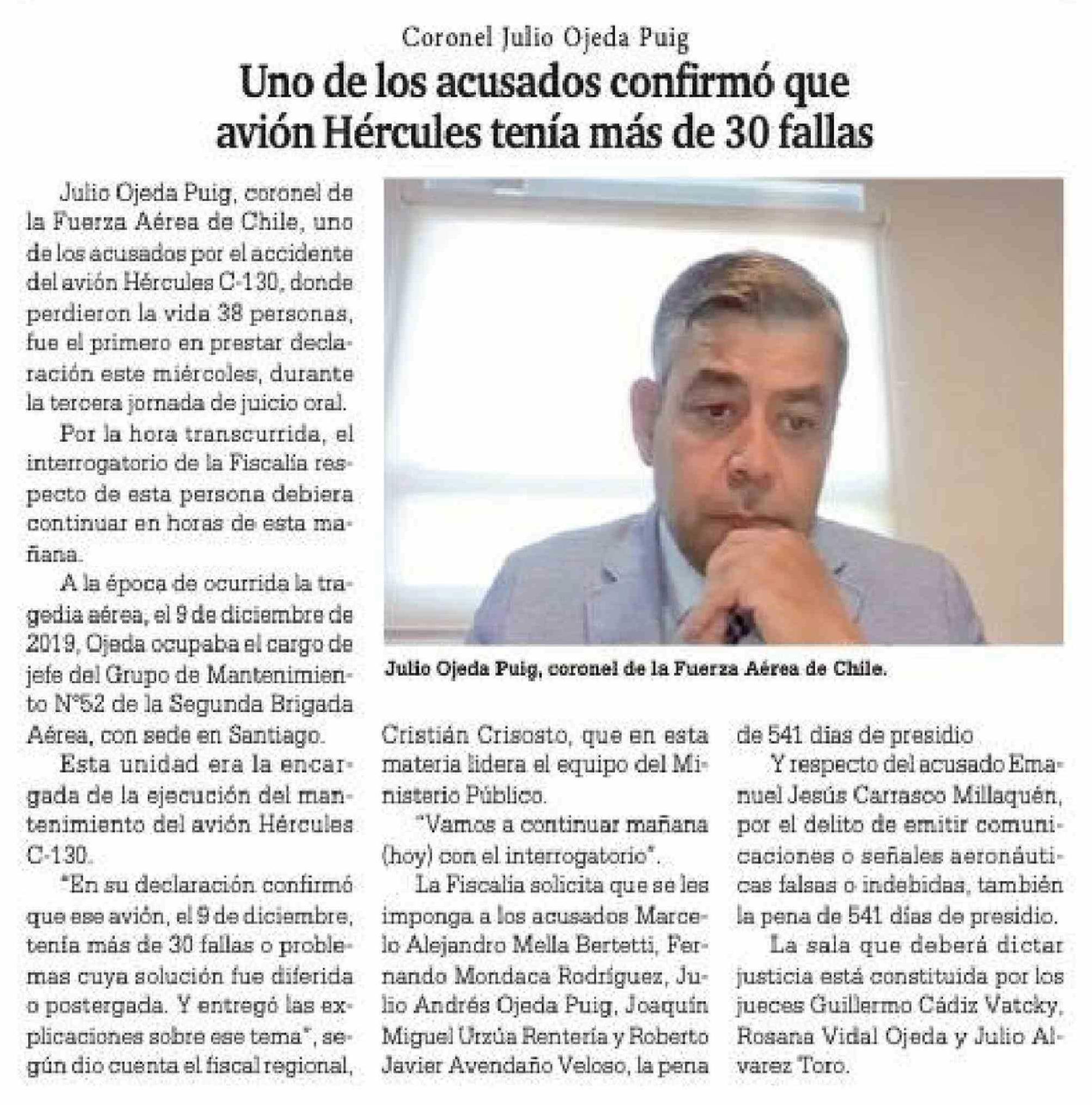 Uno de los acusados confirmó que avión Hércules tenía más de 30 fallas