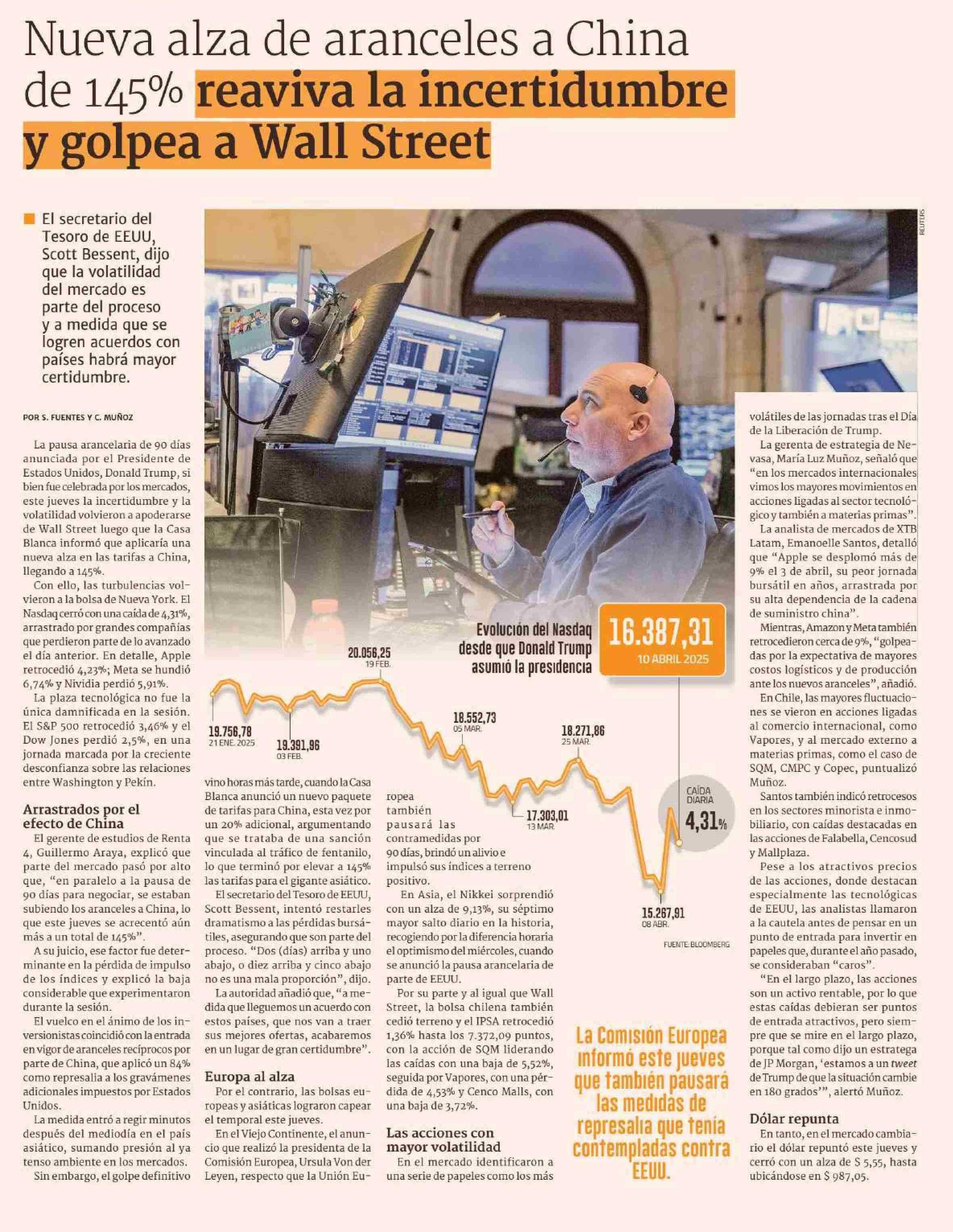 Nueva alza de aranceles a China de 145% reaviva la incertidumbre y golpea a Wall Street