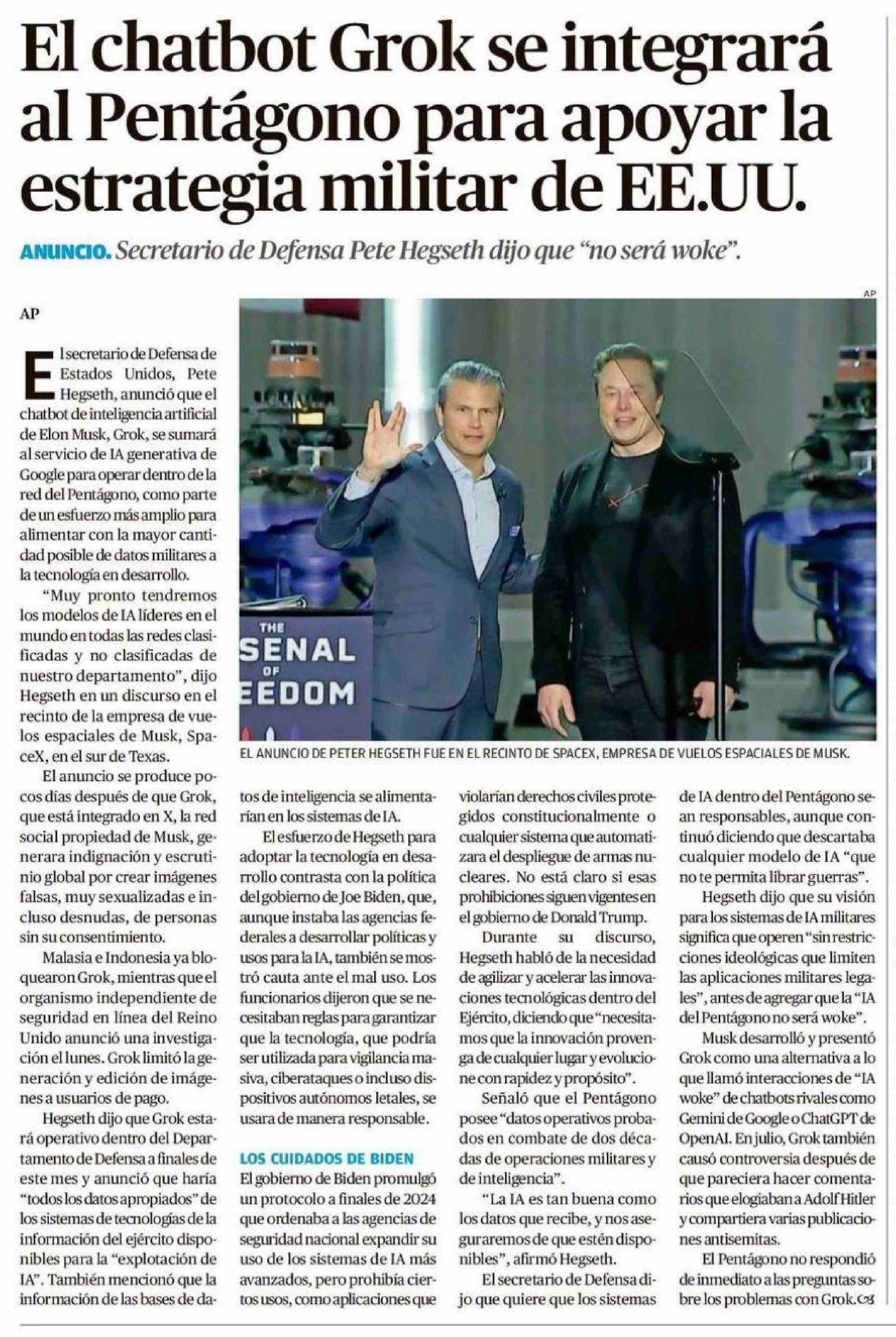El chatbot Grok se integrará al Pentágono para apoyar la estrategia militar de EE.UU.