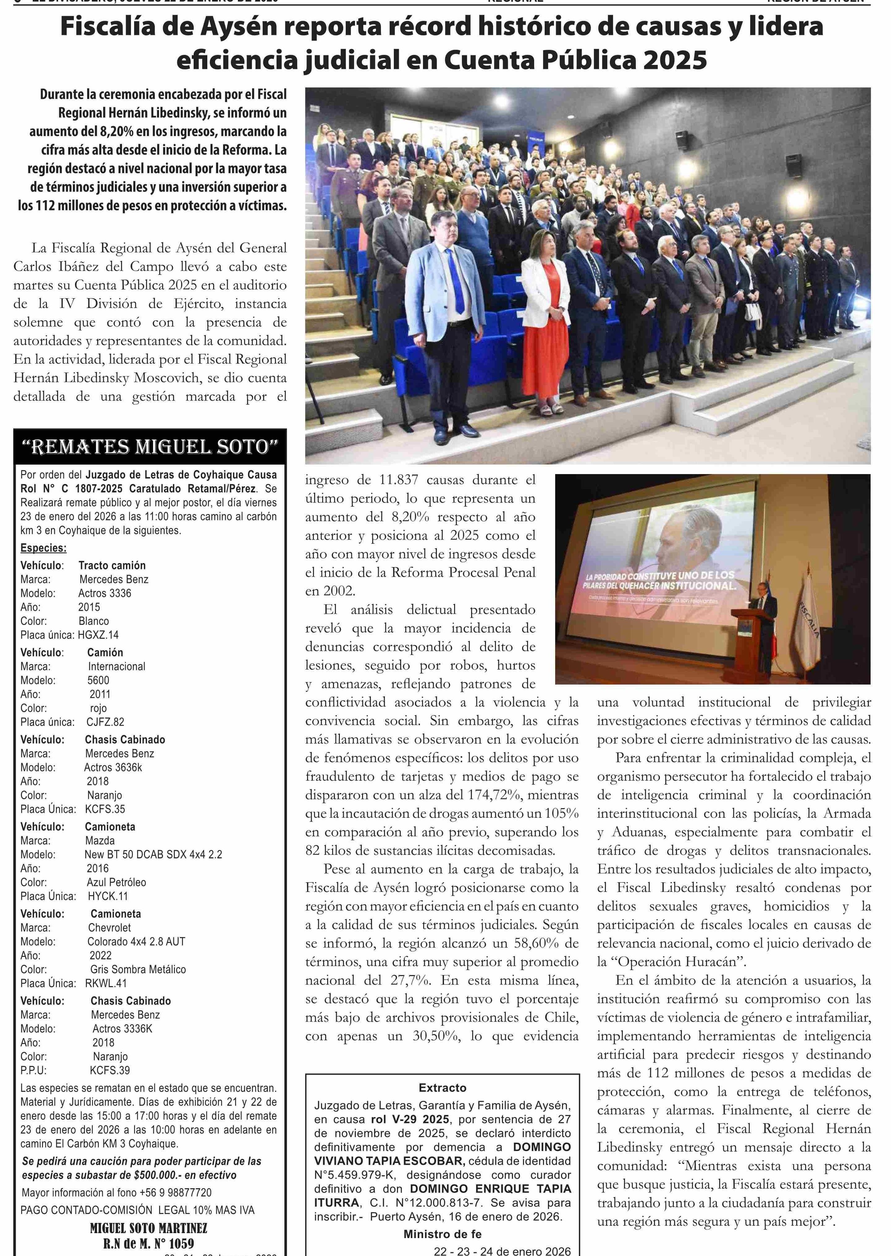 Fiscalía de Aysén reporta récord histórico de causas y lidera eficiencia judicial en Cuenta Pública 2025