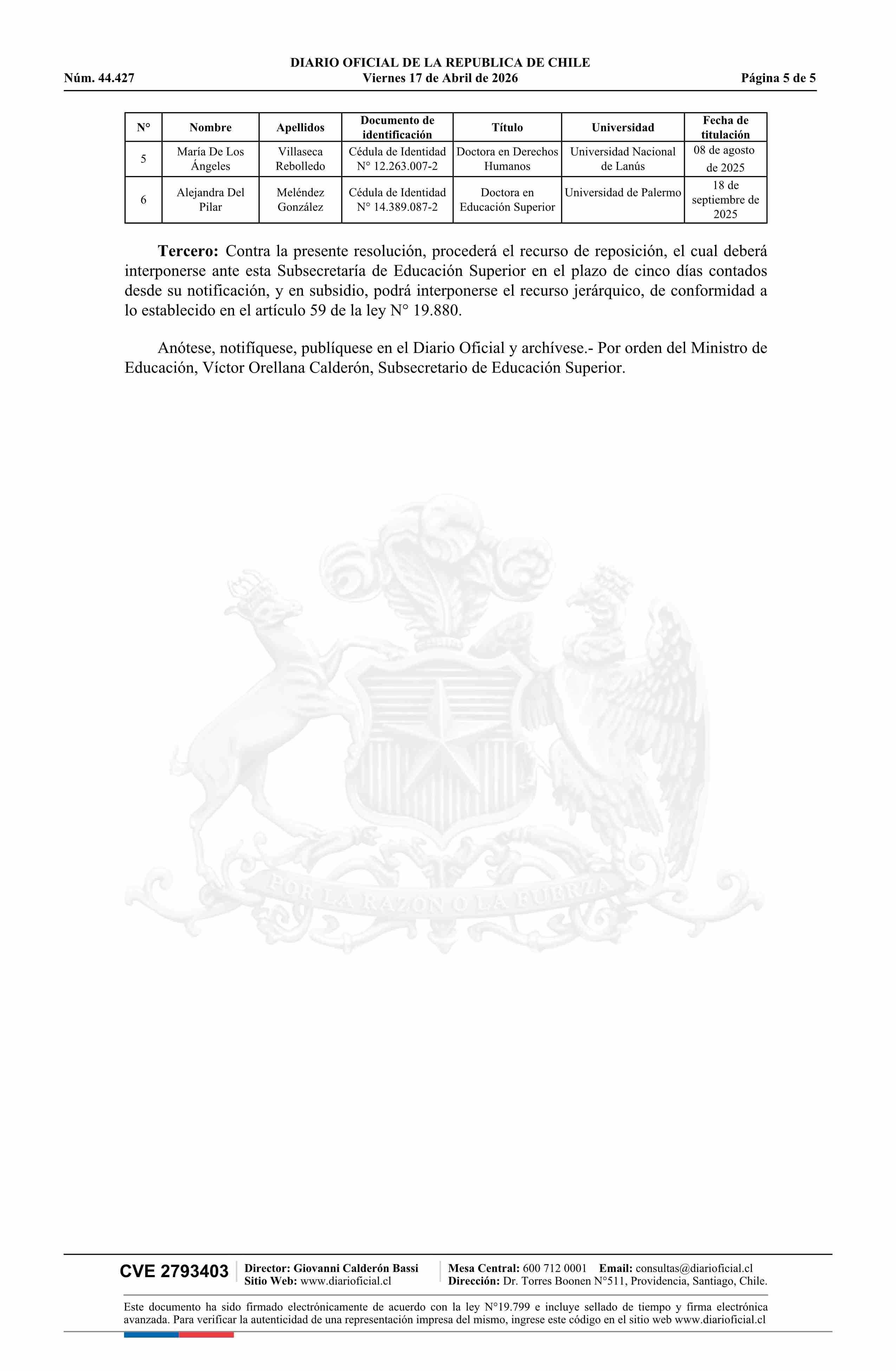 Fuente: Diario Oficial Edición Electrónica (Diario Oficial de Chile - 2 Normas Particulares) Página(s): 6-10