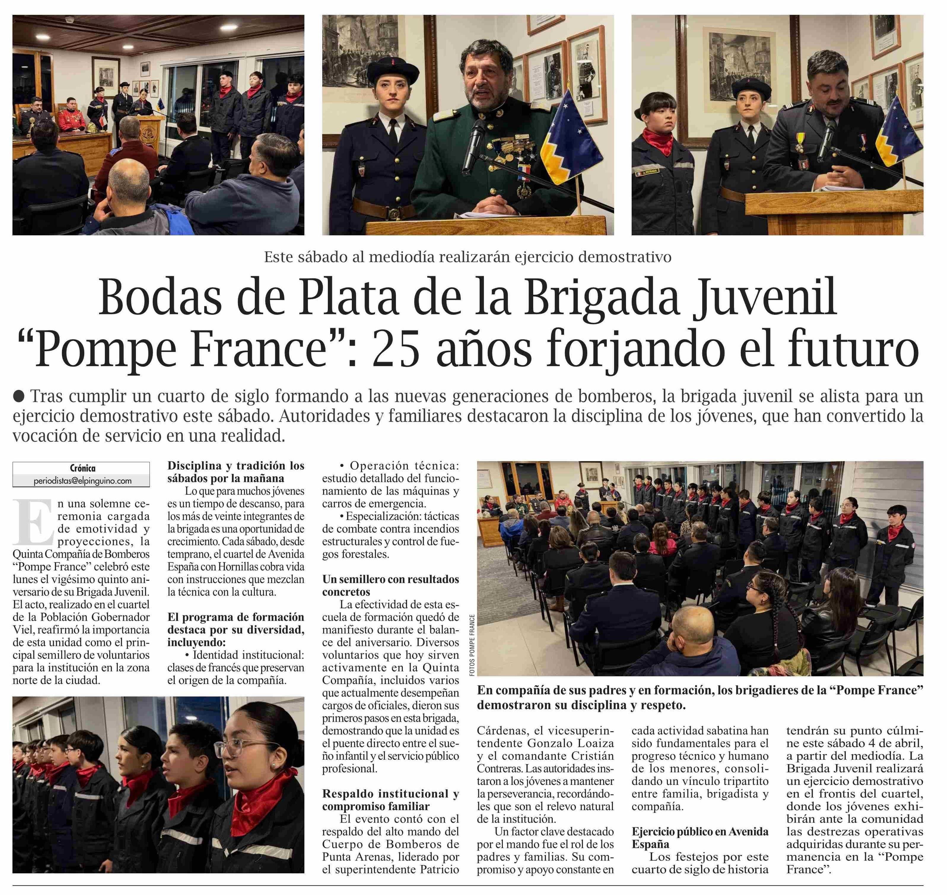 Bodas de Plata de la Brigada Juvenil “Pompe France”: 25 años forjando el futuro