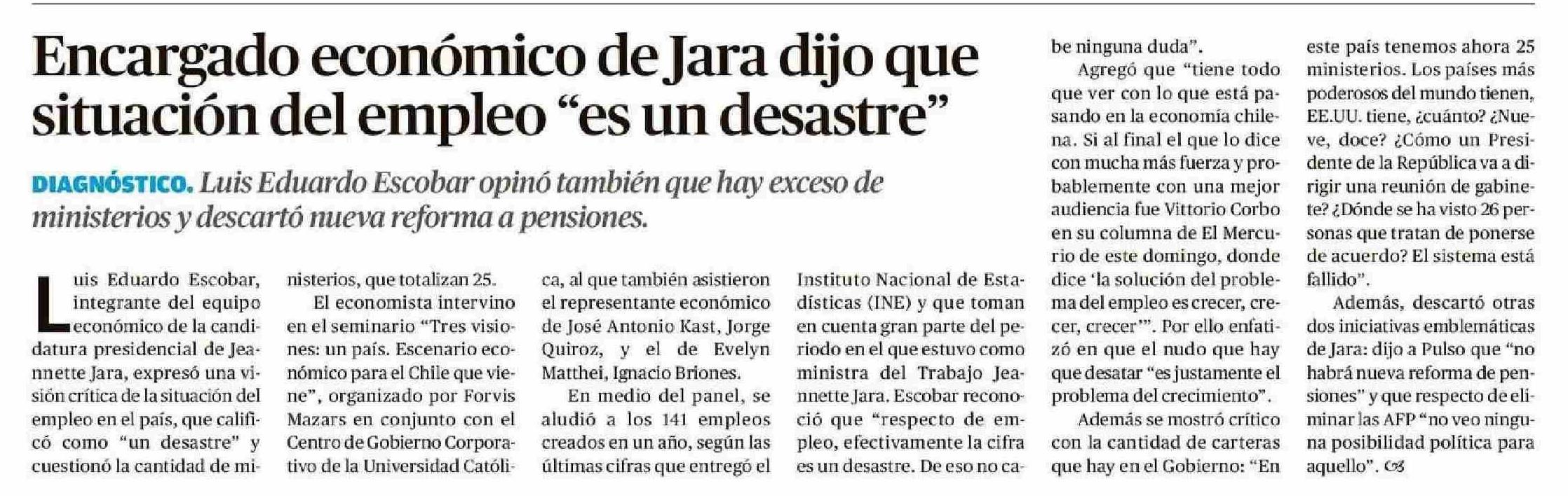 Encargado económico de Jara dijo que situación del empleo "es un desastre"