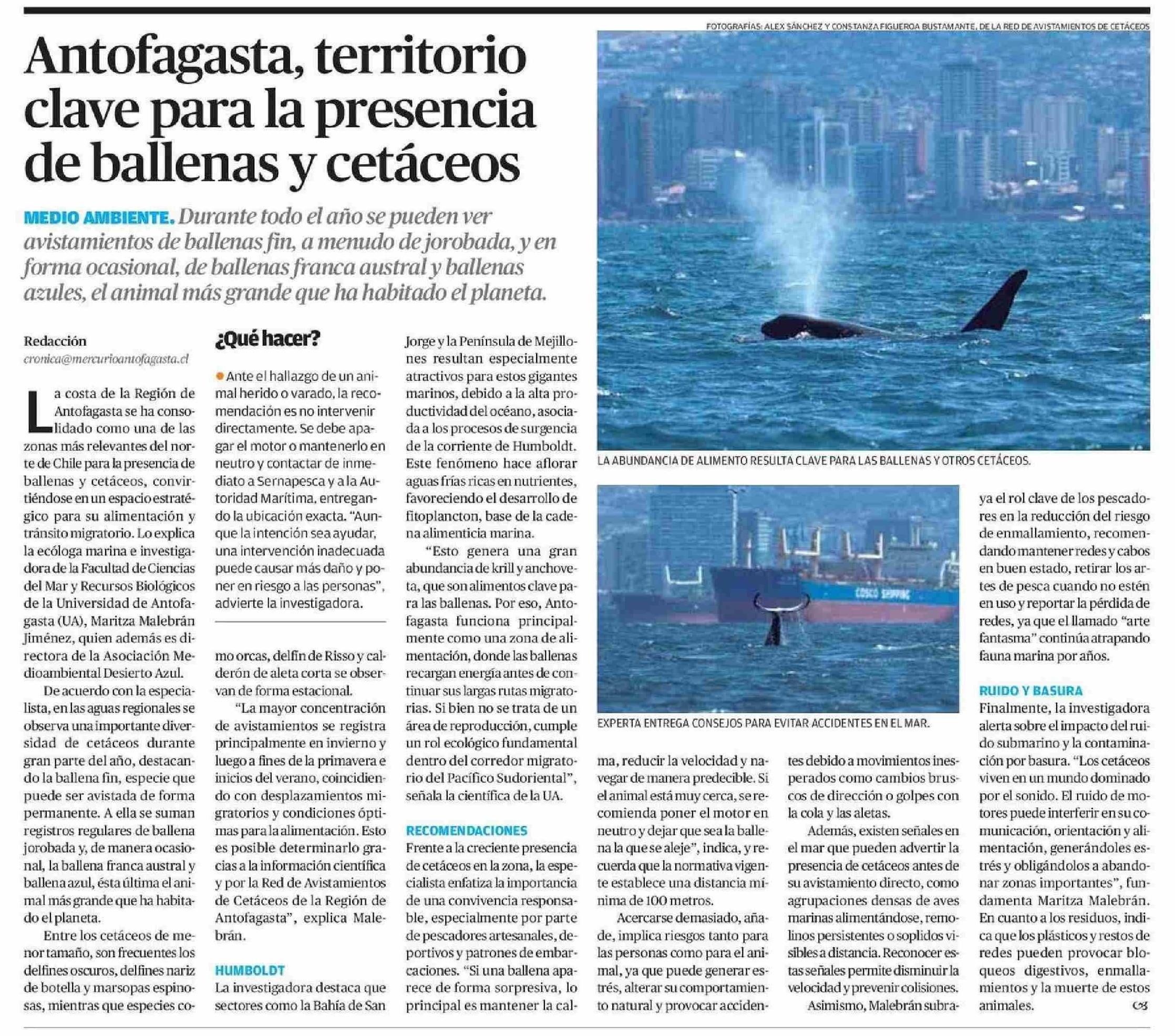 Antofagasta, territorio clave para la presencia de ballenas y cetáceos