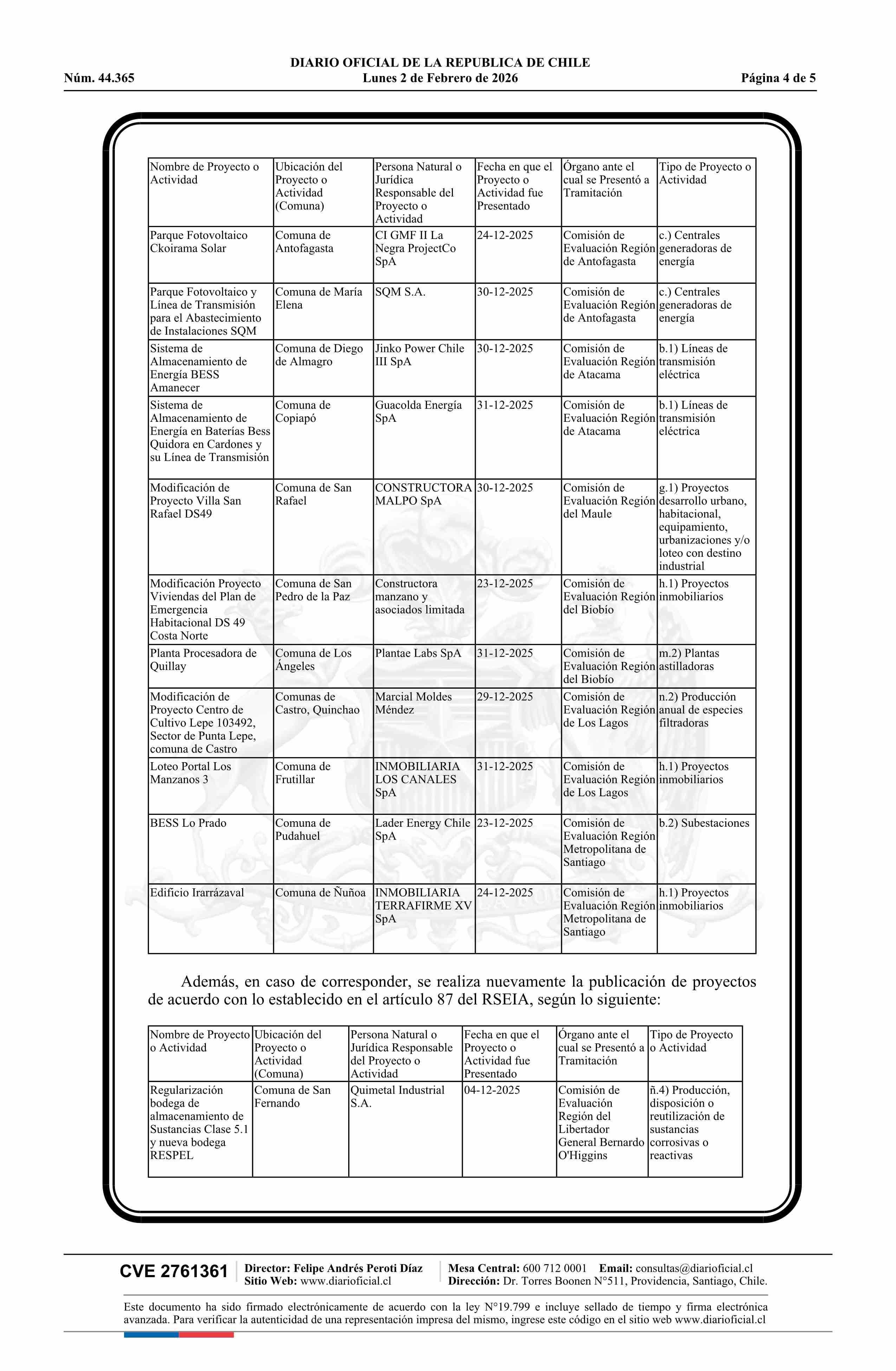 | Fecha: | 02-02-2026 | Sector: | Aviso Licitaciones | Región: | Región Metropolitana de Santiago |
