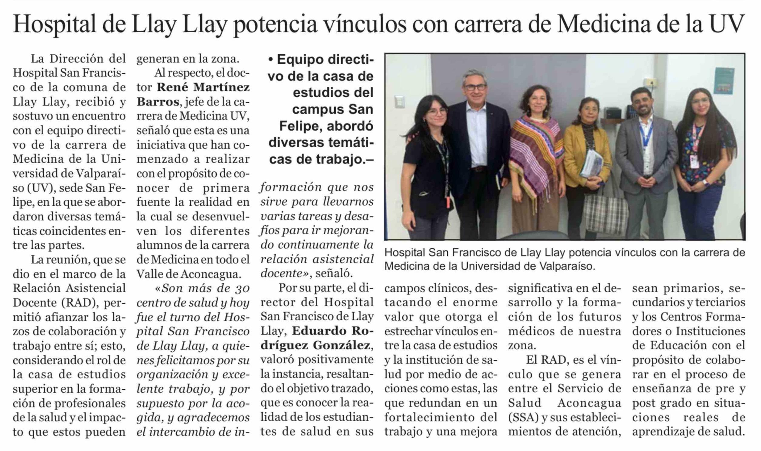 Hospital de Llay Llay potencia vínculos con carrera de Medicina de la UV