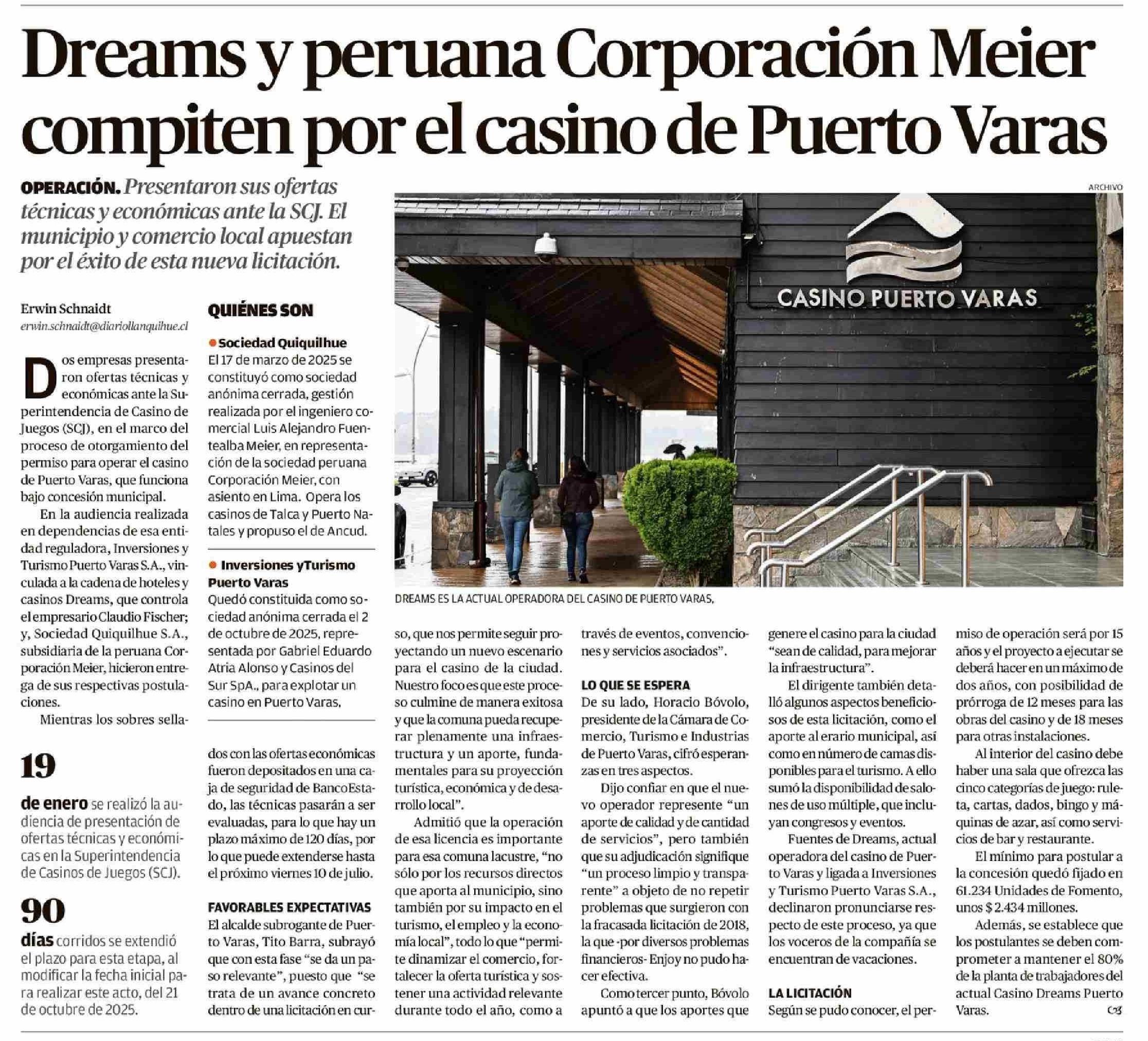 Dreams y peruana Corporación Meier compiten por el casino de Puerto Varas