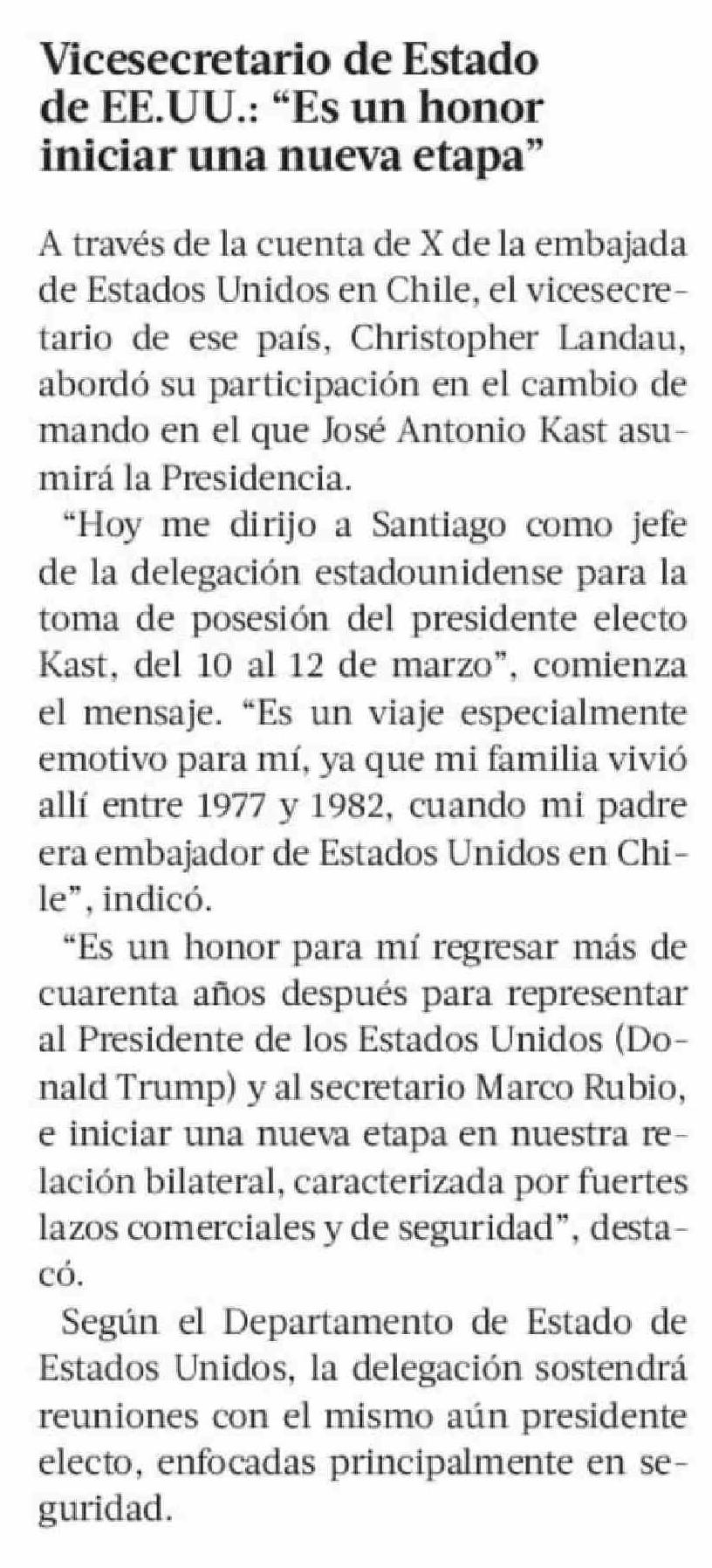 Vicesecretario de Estado de EE.UU .: "Es un honor iniciar una nueva etapa"