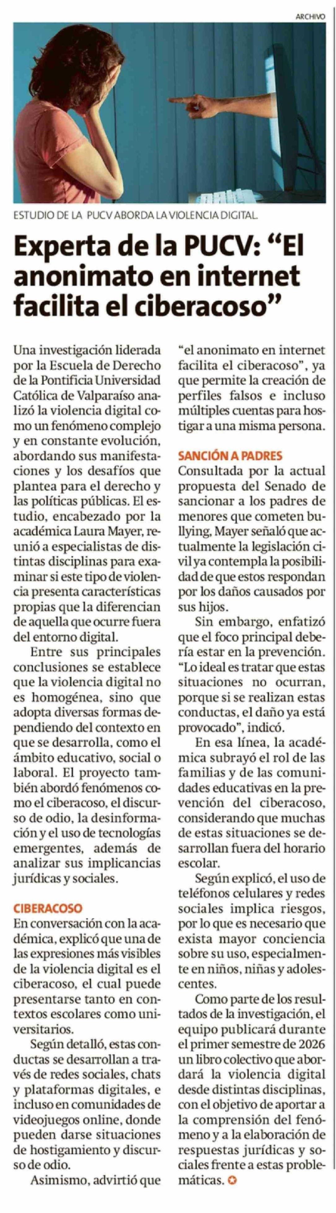 Experta de la PUCV: "EI anonimato en internet facilita el ciberacoso"