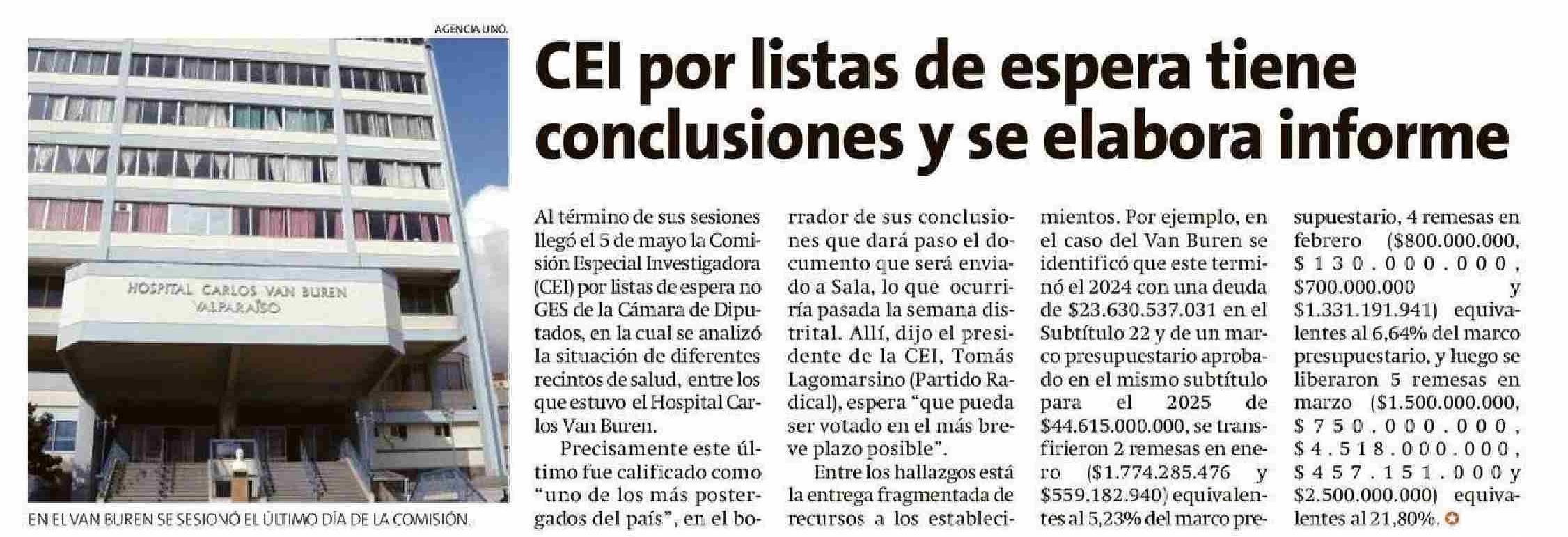 CEl por listas de espera tiene conclusiones y se elabora informe