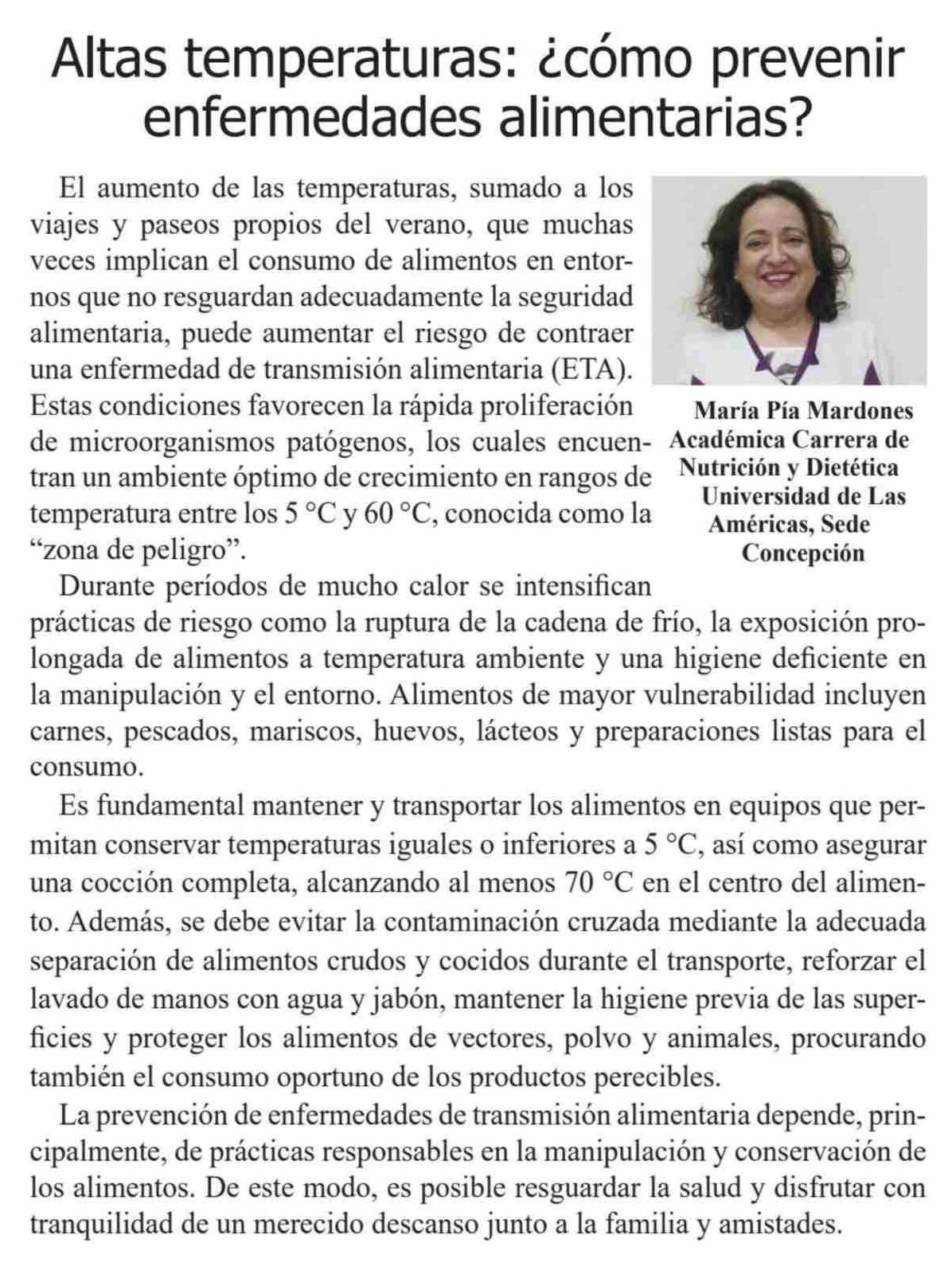Columnas de Opinión: Altas temperaturas: ¿cómo prevenir enfermedades alimentarias?
