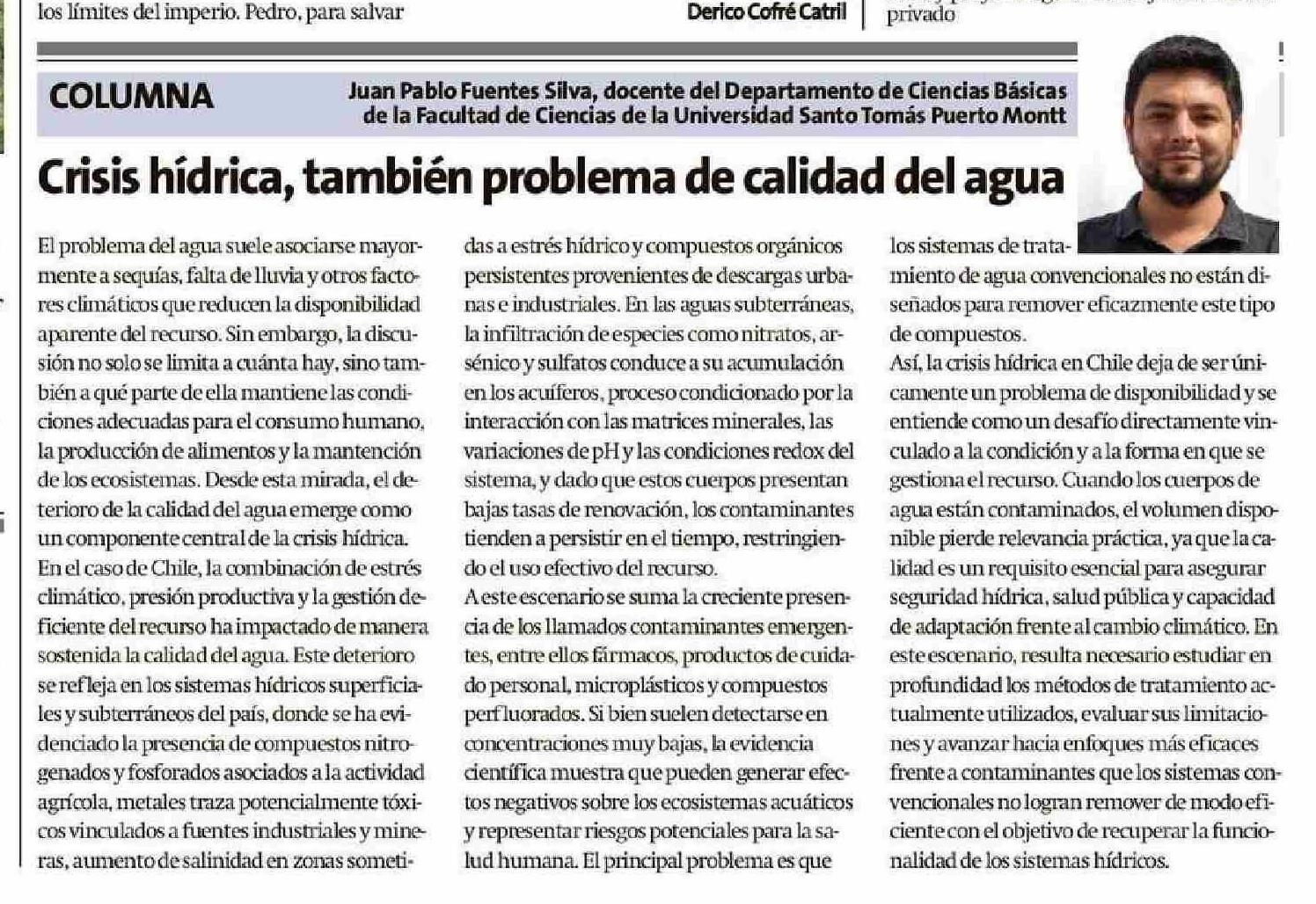 Columnas de Opinión: Crisis hídrica, también problema de calidad del agua
