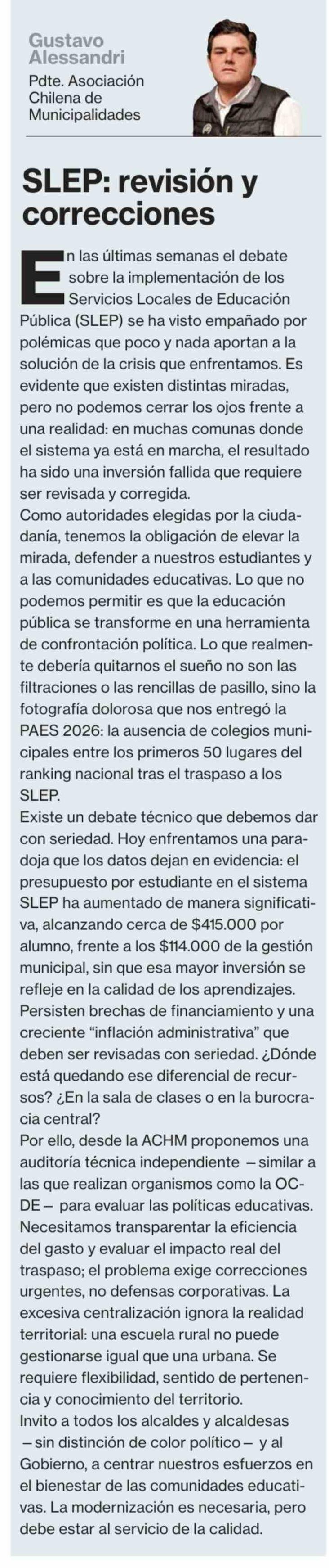 Columnas de Opinión: SLEP: revisión y correcciones