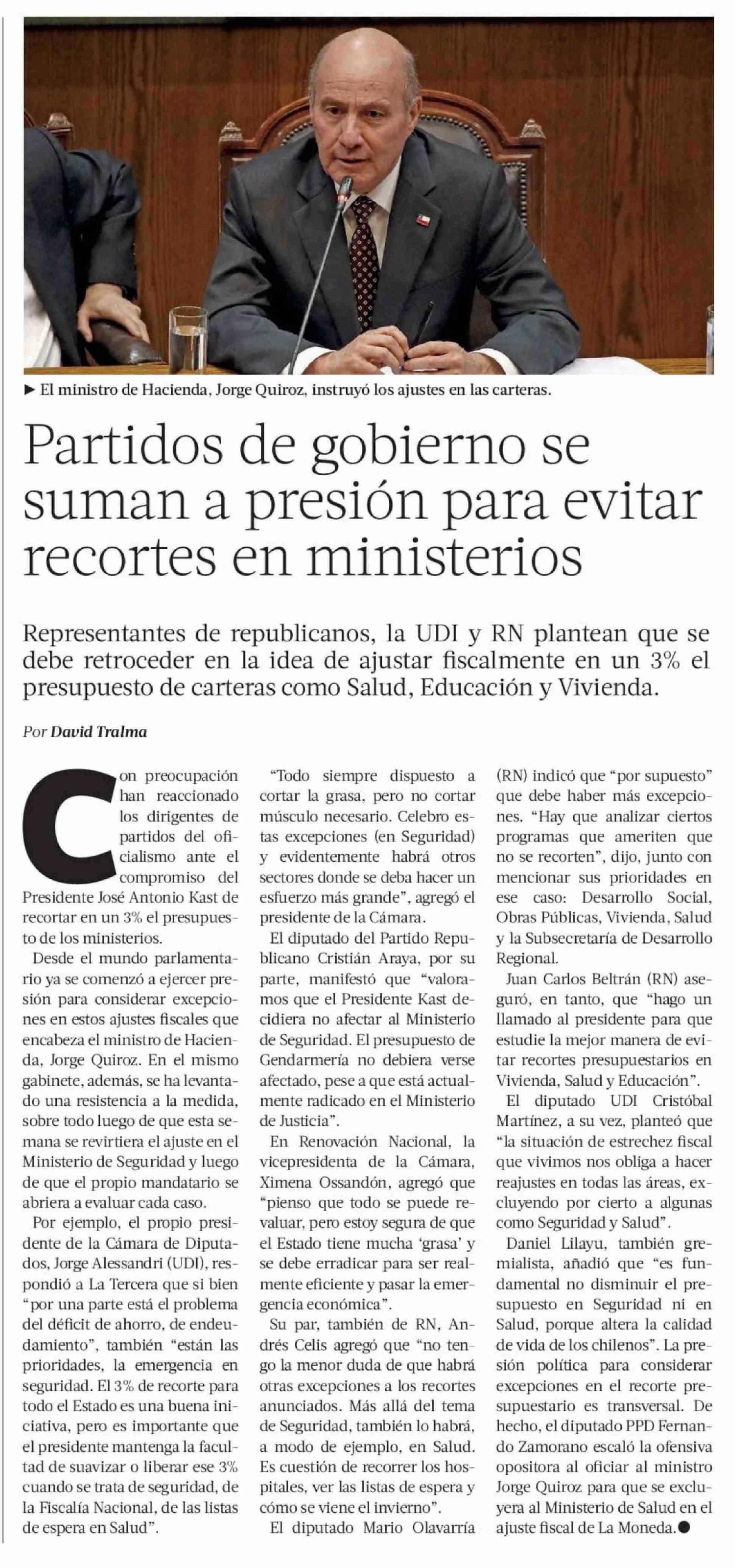 Partidos de gobierno se suman a presión para evitar recortes en ministerios