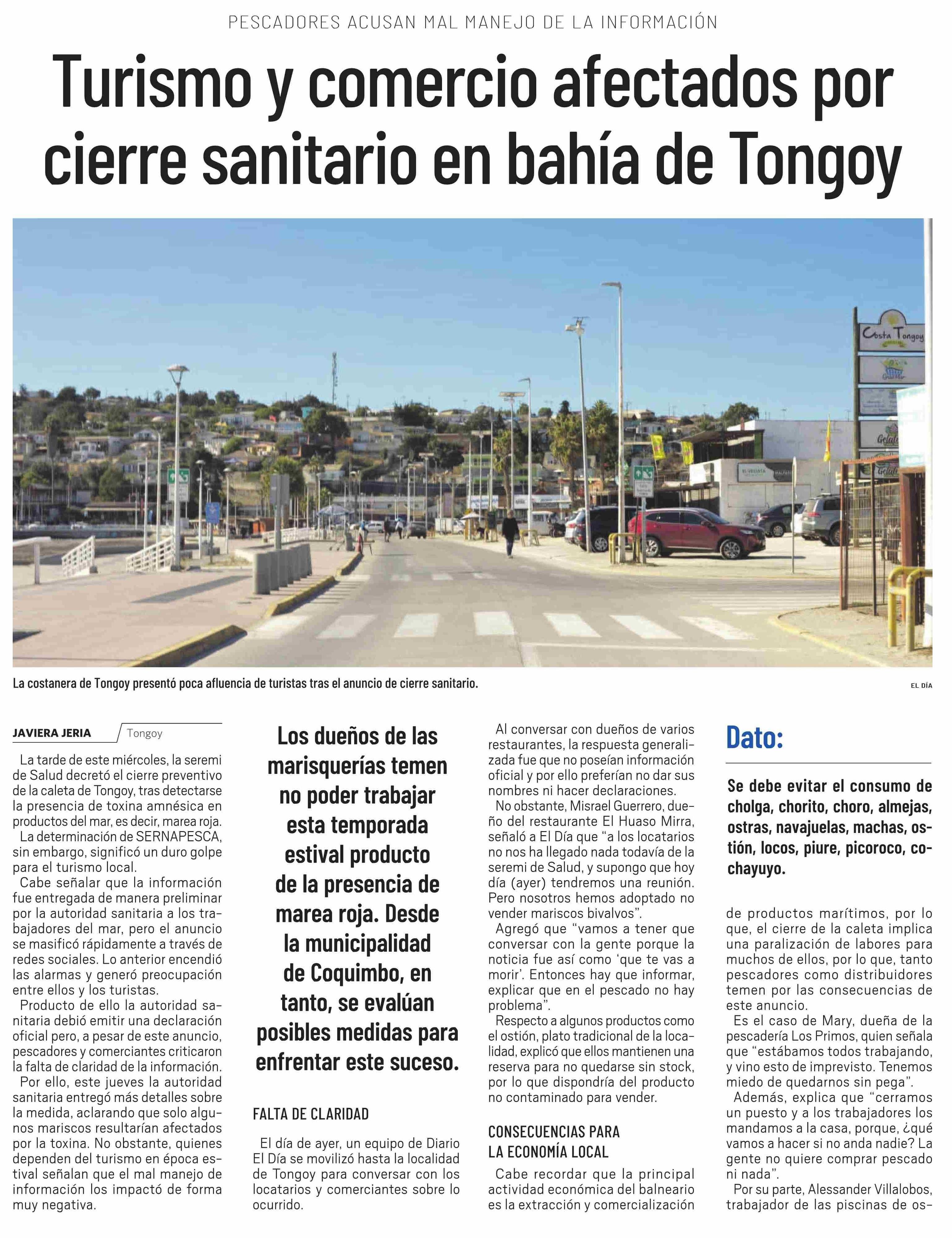 Turismo y comercio afectados por cierre sanitario en bahía de Tongoy