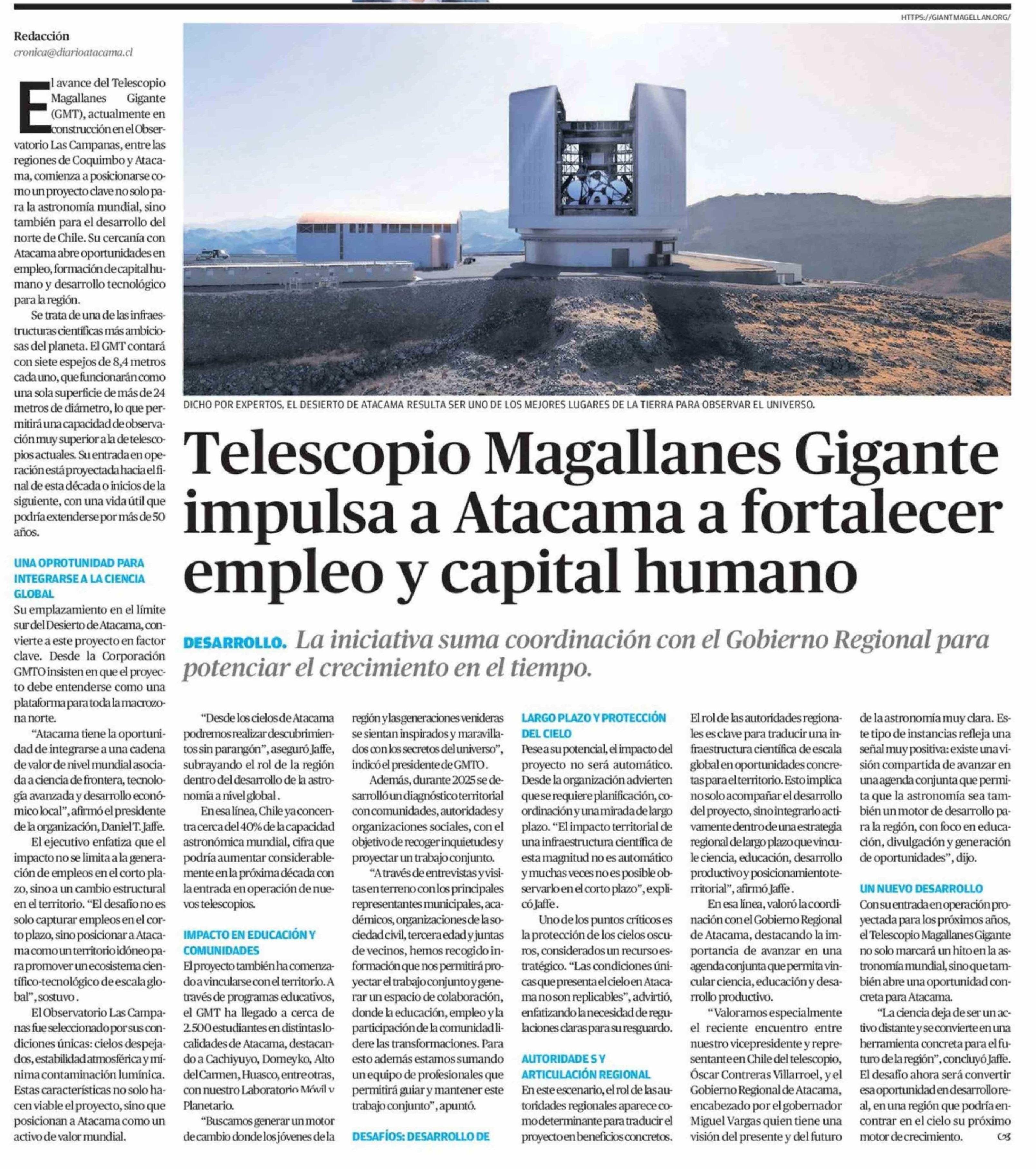 Telescopio Magallanes Gigante impulsa a Atacama a fortalecer empleo y capital humano