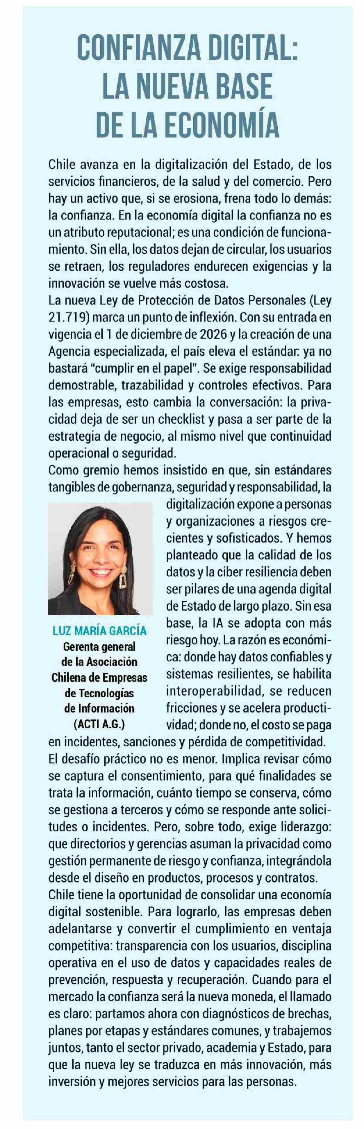 COLUMNAS DE OPINIÓN: CONFIANZA DIGITAL: LA NUEVA BASE DE LA ECONOMIA