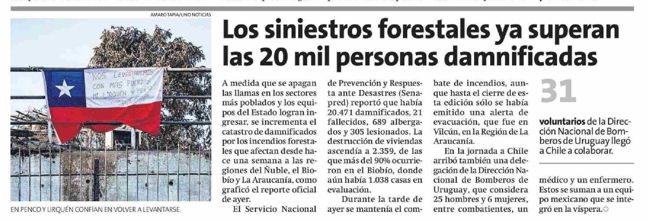 Los siniestros forestales ya superan las 20 mil personas damnificadas