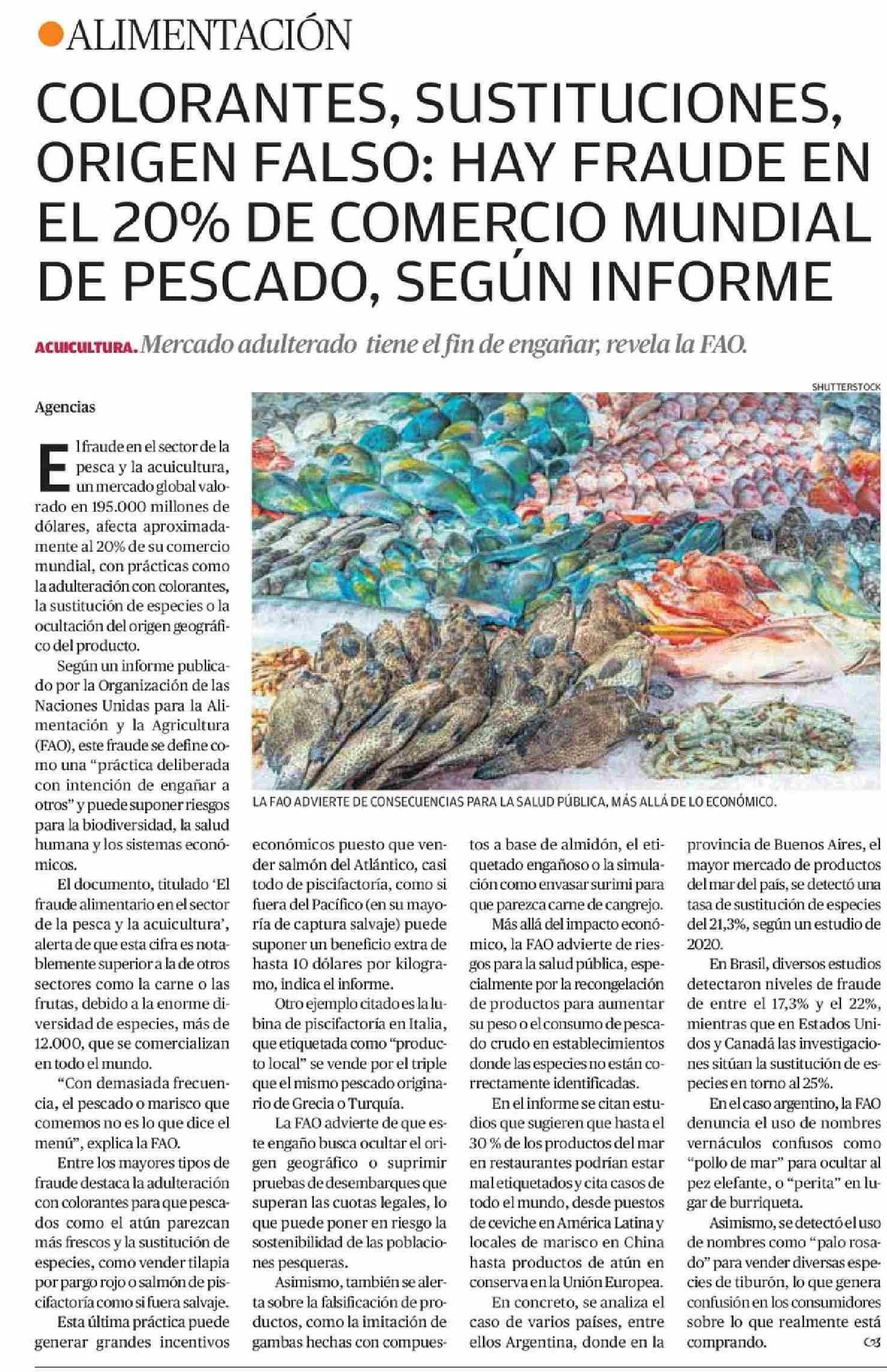 COLORANTES, SUSTITUCIONES, ORIGEN FALSO: HAY FRAUDE EN EL 20% DE COMERCIO MUNDIAL DE PESCADO, SEGUN INFORME