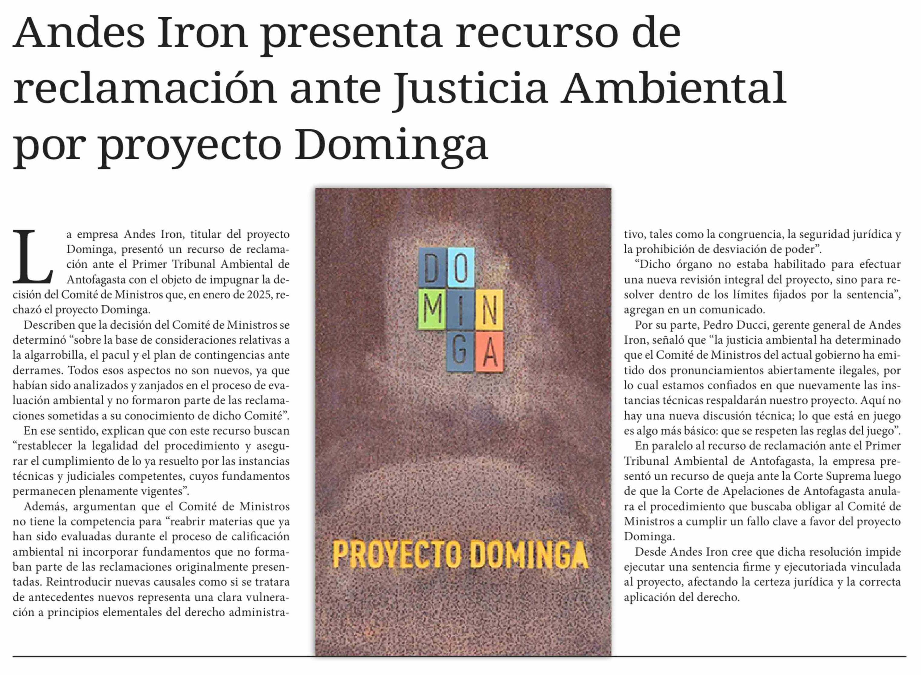 Andes Iron presenta recurso de reclamación ante Justicia Ambiental por proyecto Dominga