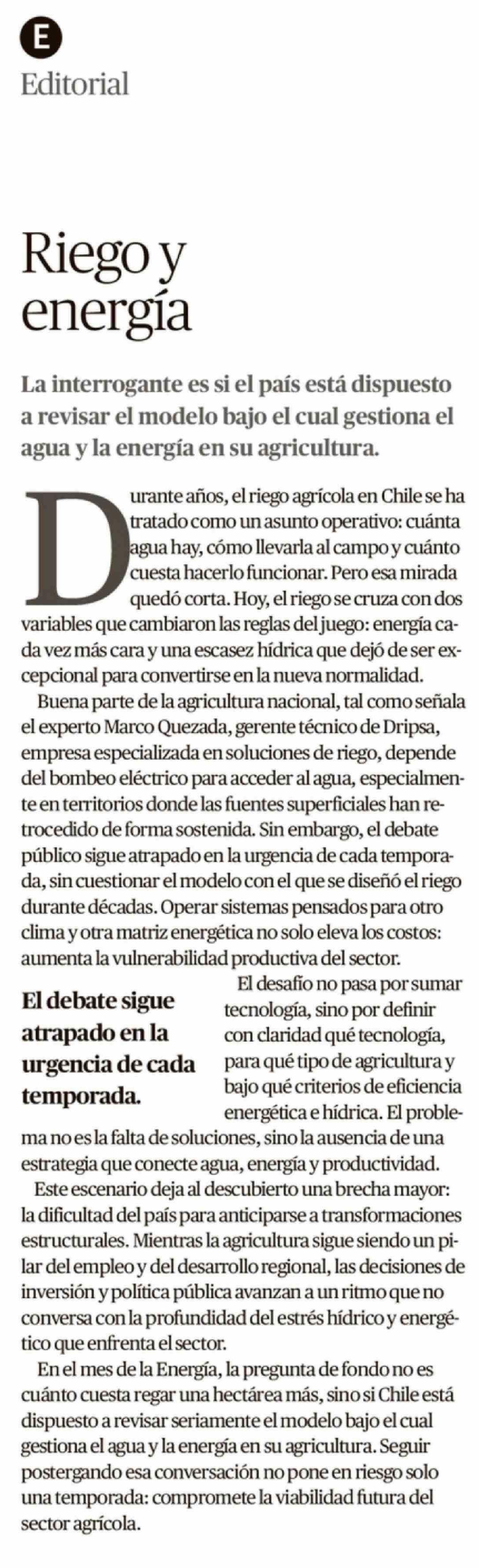 Editorial: Riego y energía