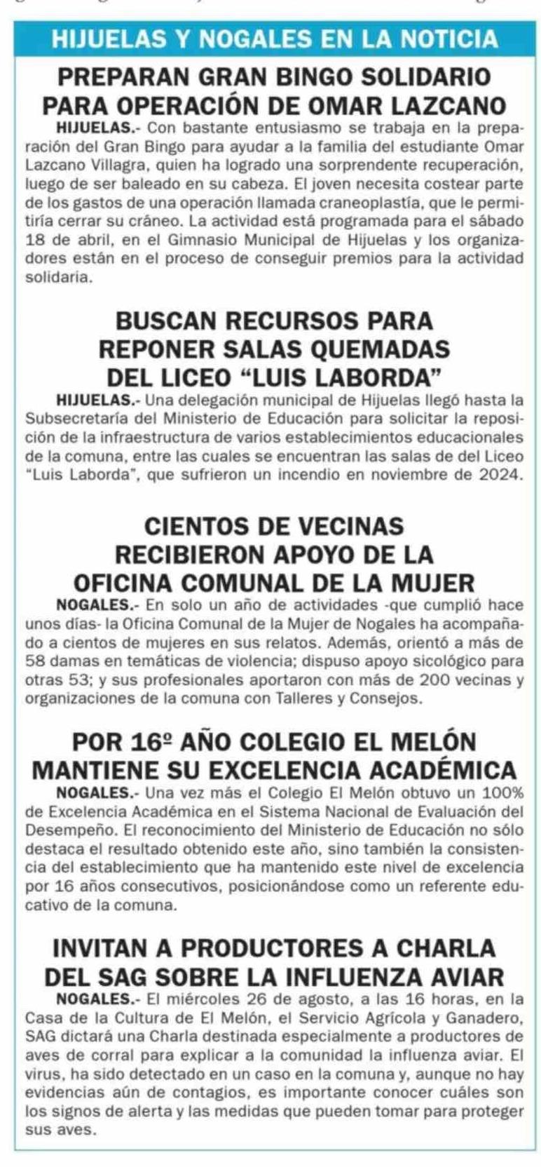 HIJUELAS Y NOGALES EN LA NOTICIA