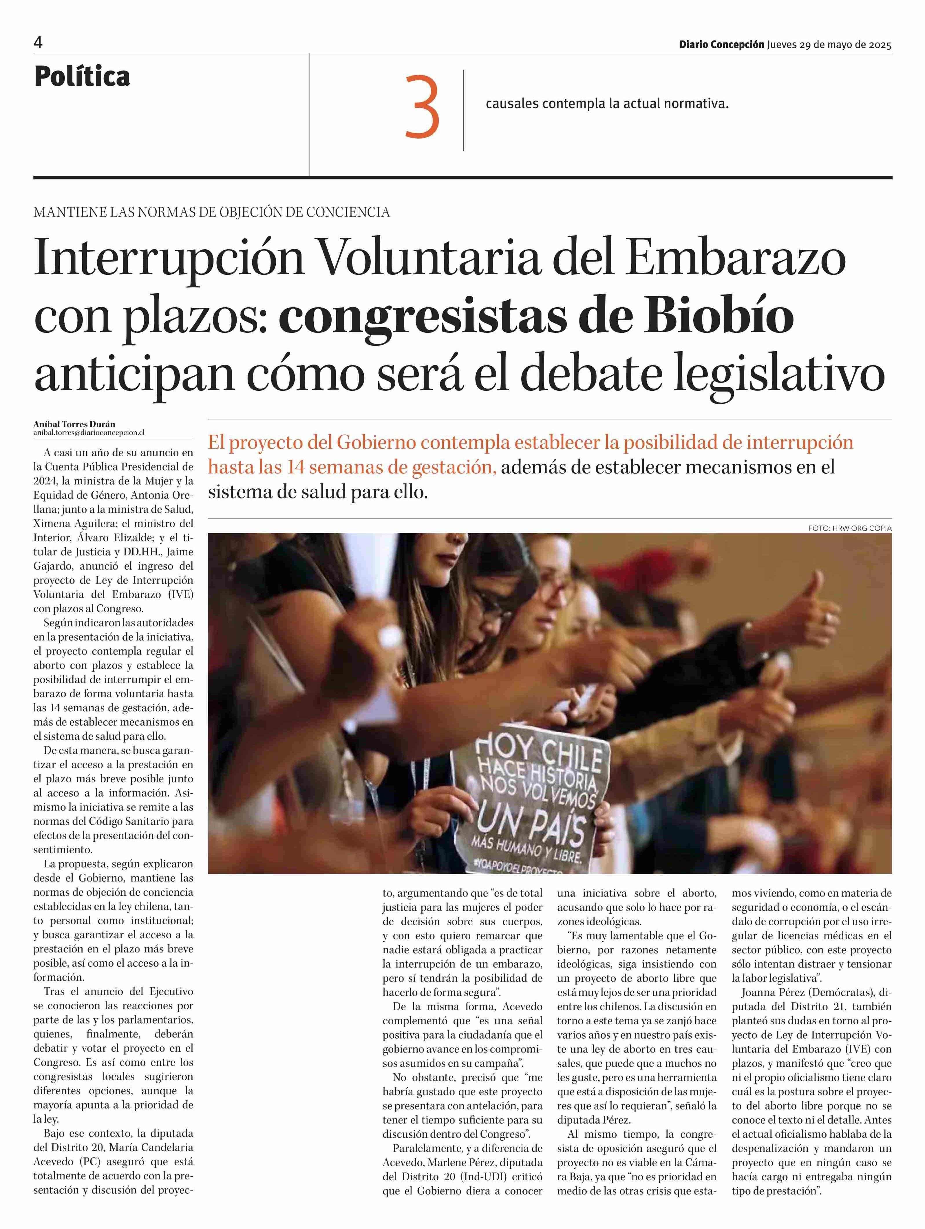 Interrupción Voluntaria del Embarazo con plazos: congresistas de Biobío anticipan cómo será el debate legislativo