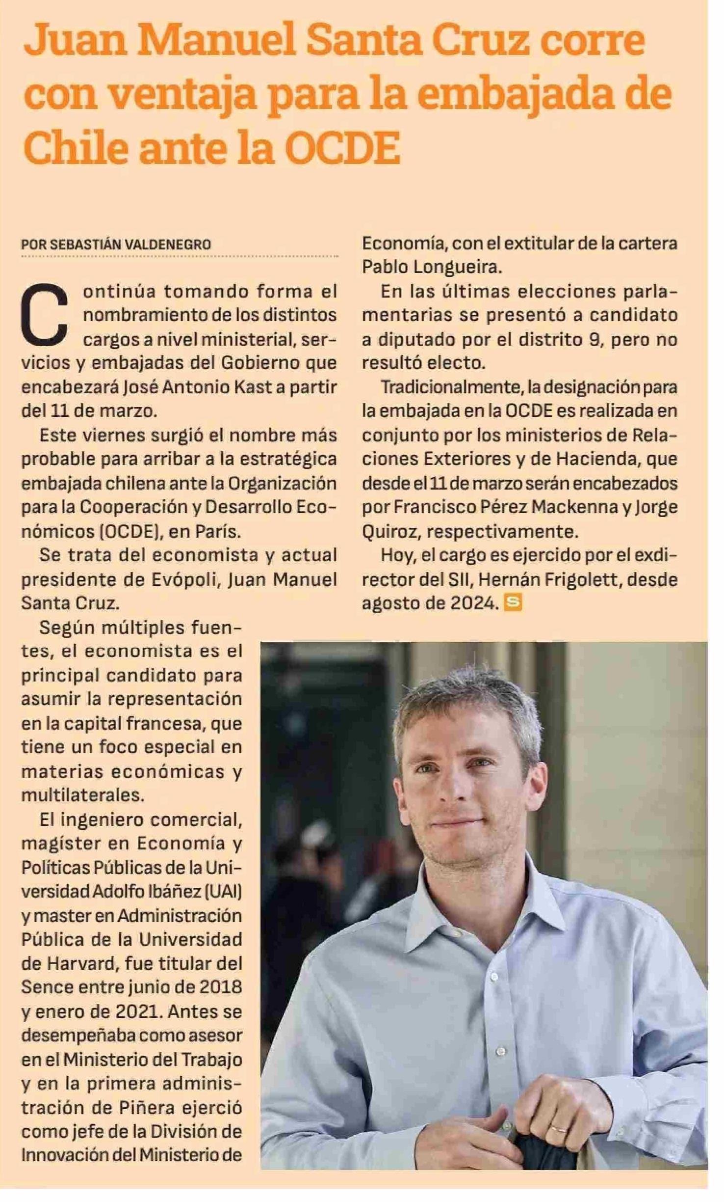 Juan Manuel Santa Cruz corre con ventaja para la embajada de Chile ante la OCDE