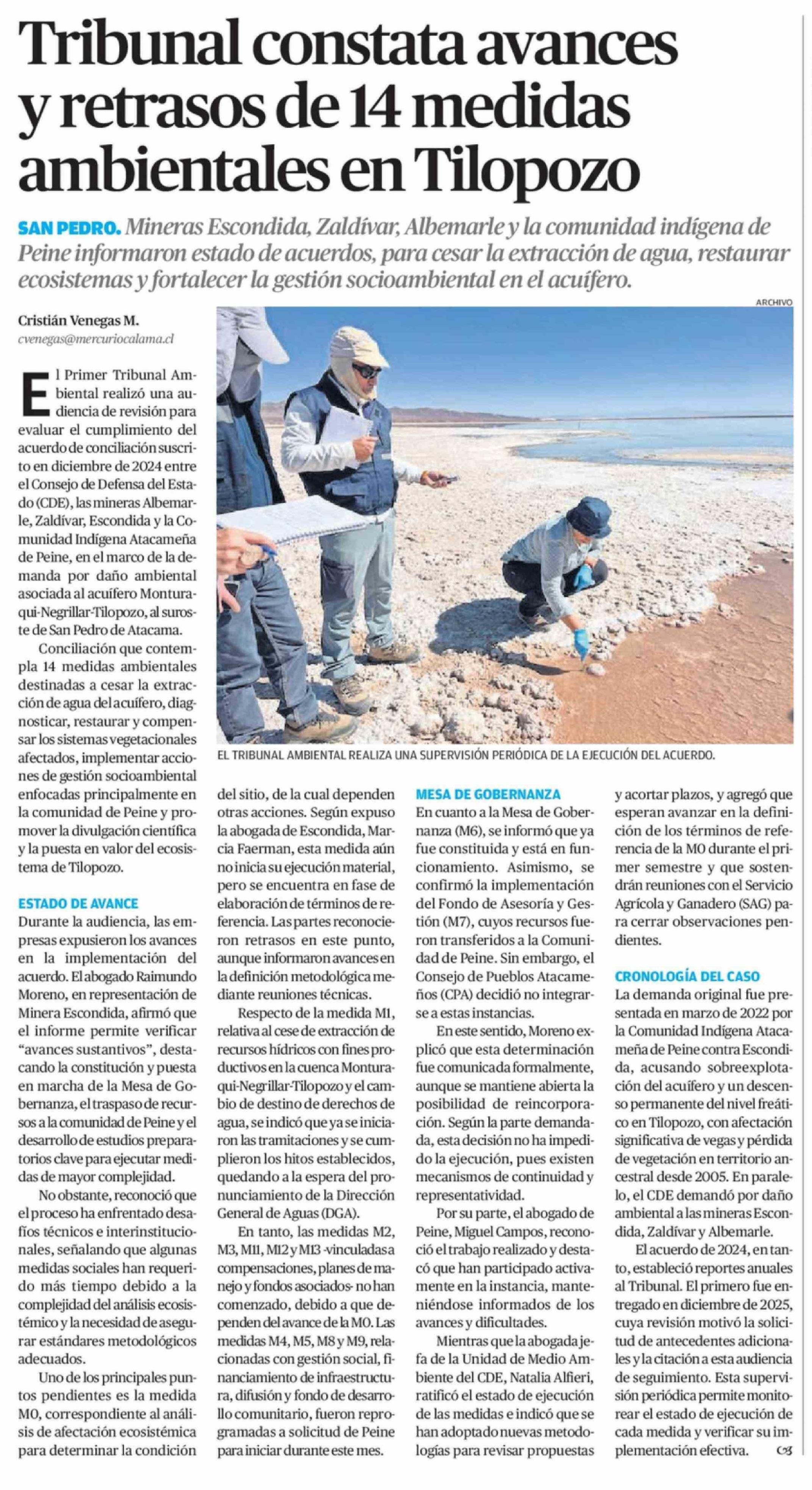 Tribunal constata avances y retrasos de 14 medidas ambientales en Tilopozo