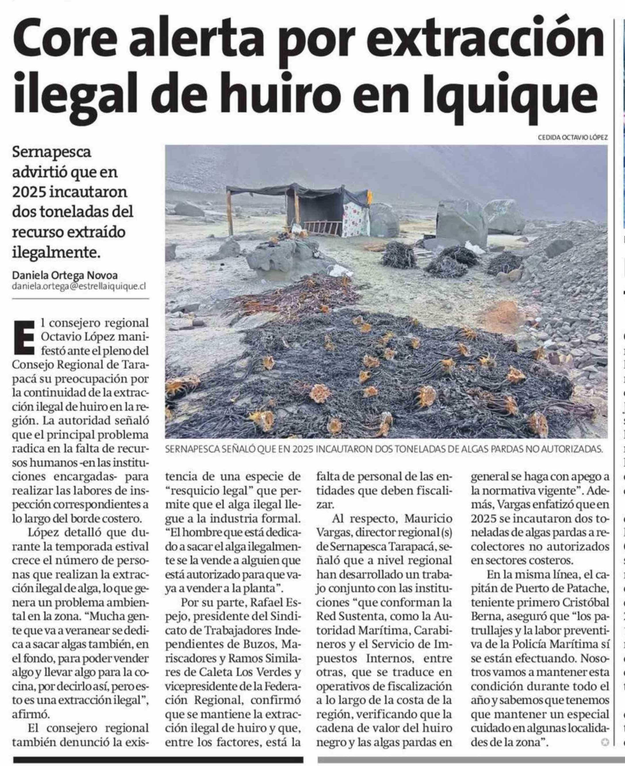 Core alerta por extracción ilegal de huiro en Iquique