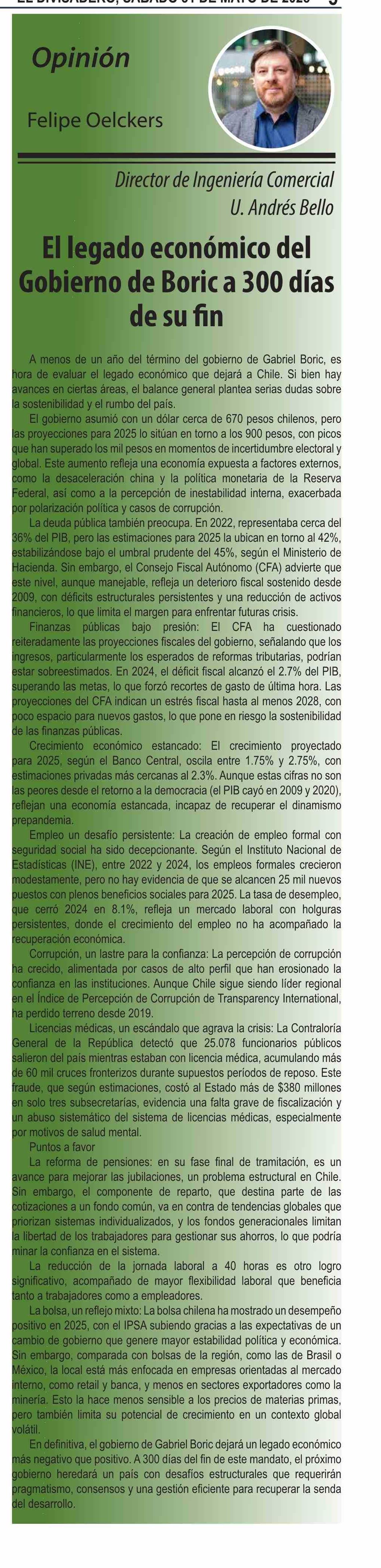 Título: Columnas de Opinión: El legado económico del Gobierno de Boric a 300 días de su fin