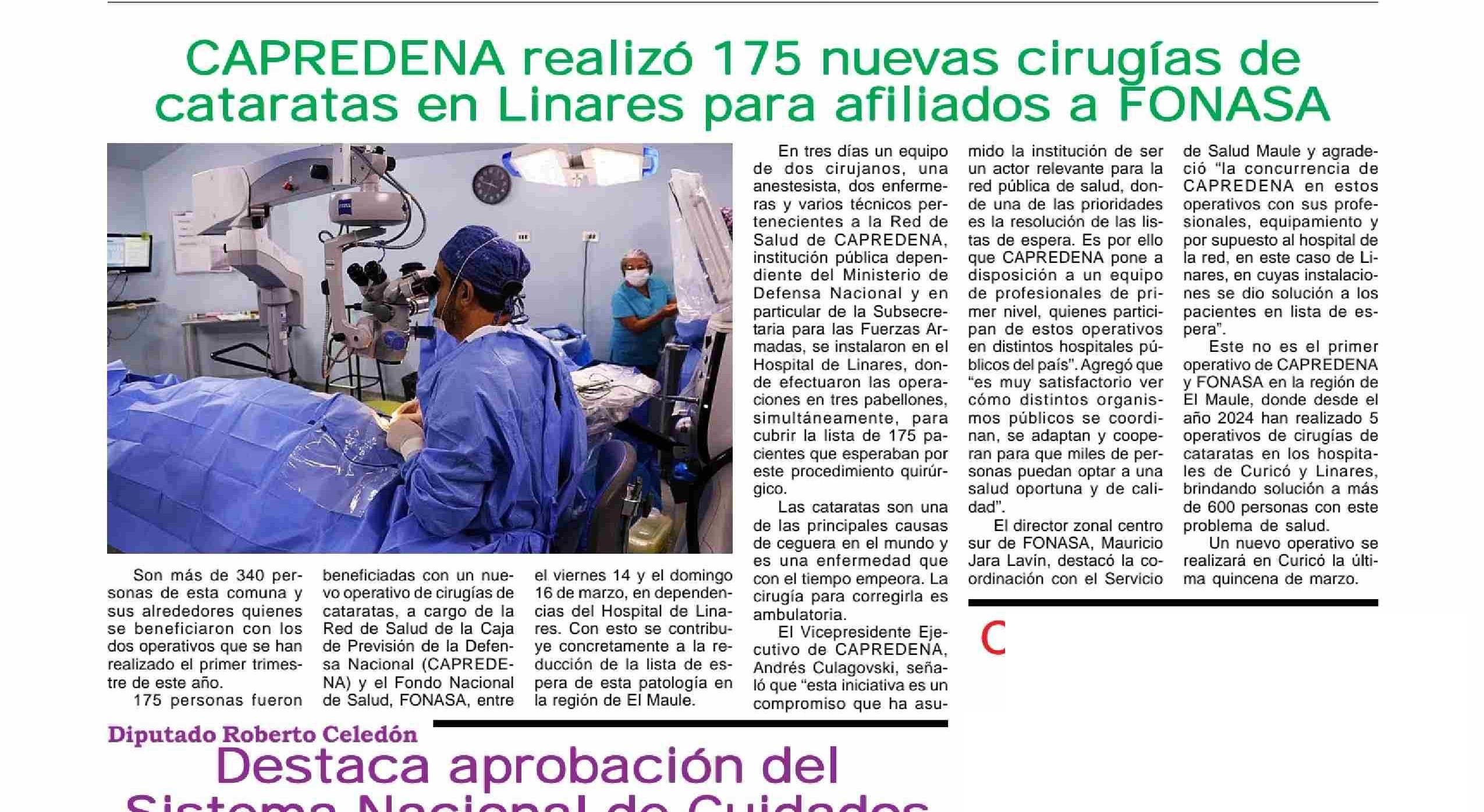 CAPREDENA realizó 175 nuevas cirugías de cataratas en Linares para afiliados a FONASA