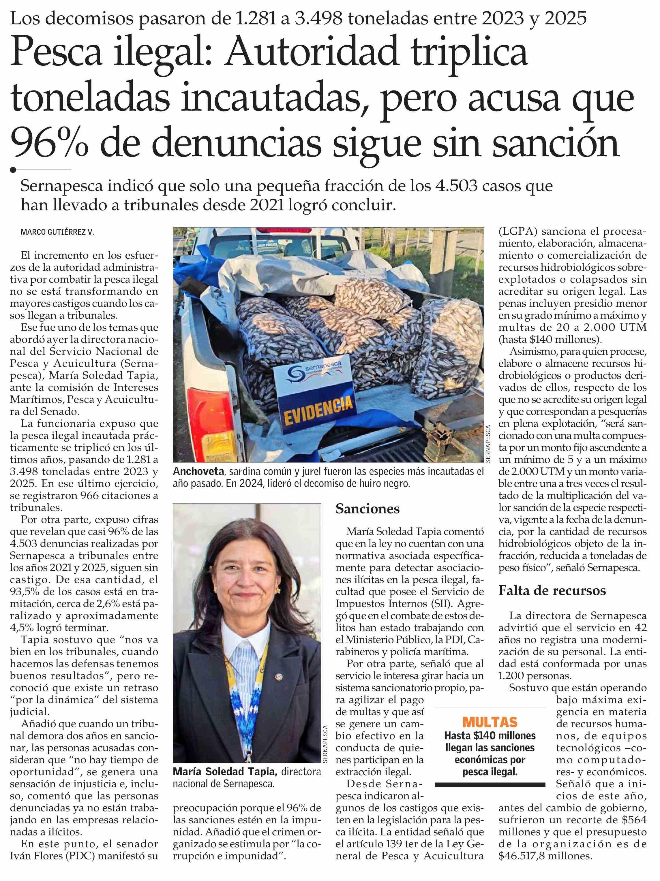 Pesca ilegal: Autoridad triplica toneladas incautadas, pero acusa que 96% de denuncias sigue sin sanción