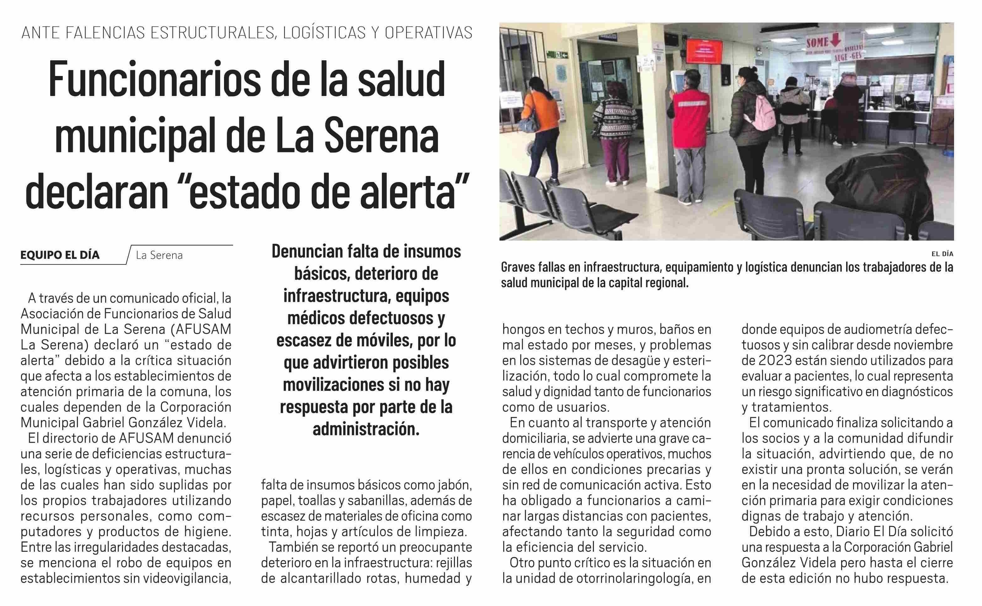 Funcionarios de la salud municipal de La Serena declaran "estado de alerta"