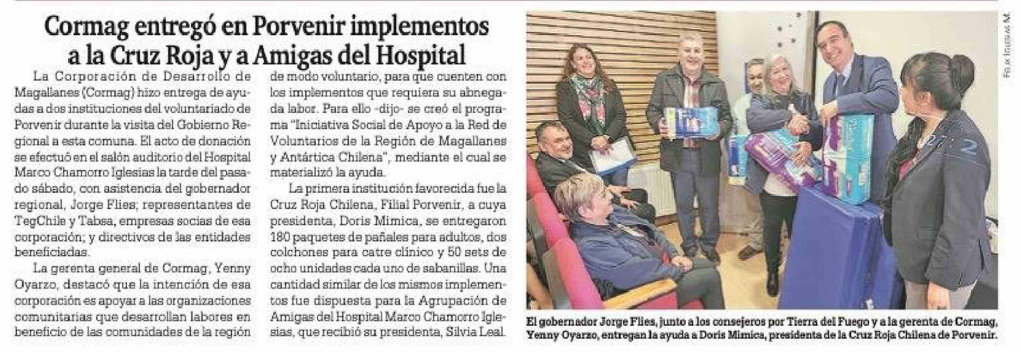 Cormag entregó en Porvenir implementos a la Cruz Roja y a Amigas del Hospital