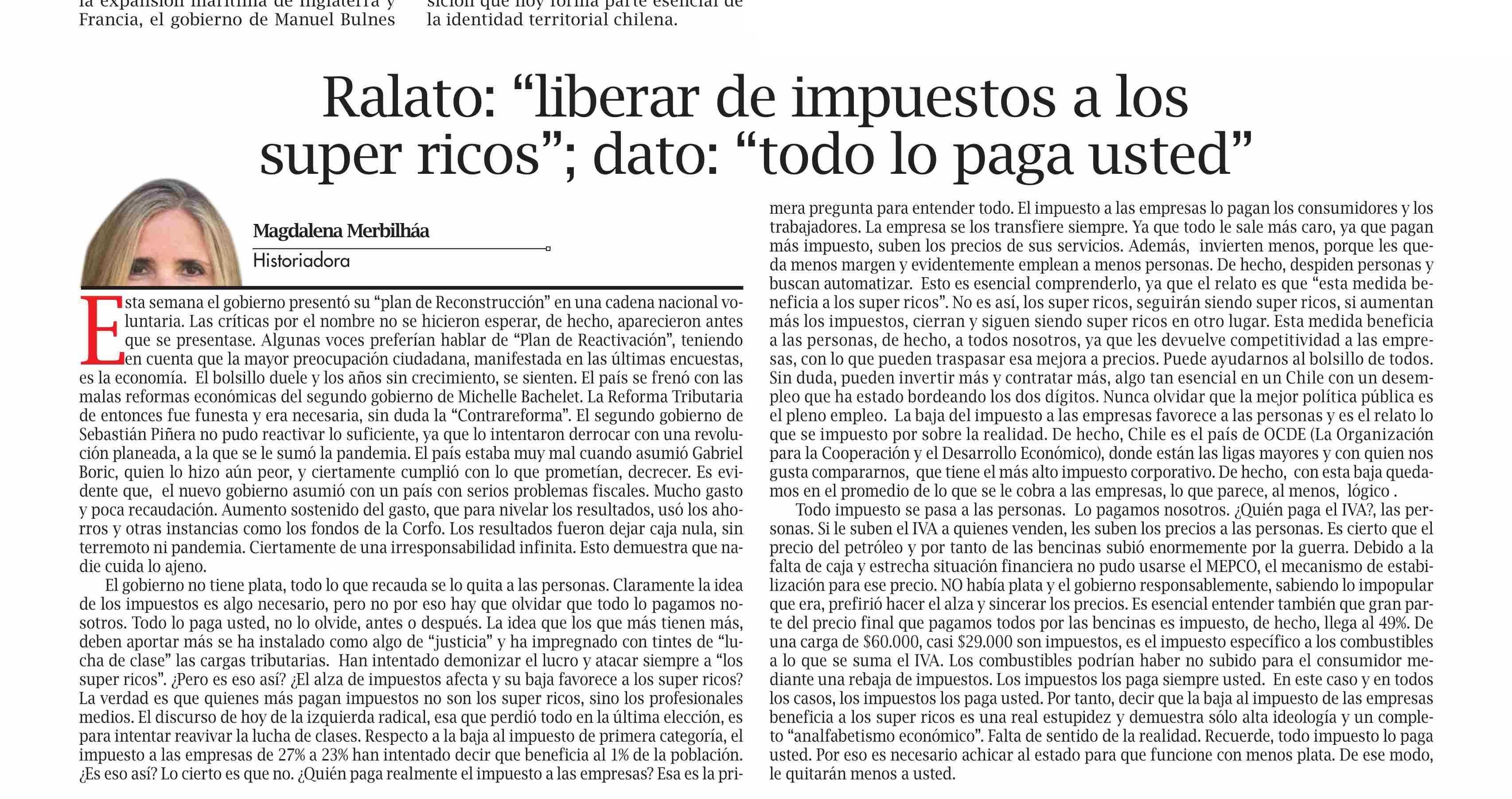 COLUMNAS DE OPINIÓN: “liberar de impuestos a los super ricos ; dato: todo lo paga usted