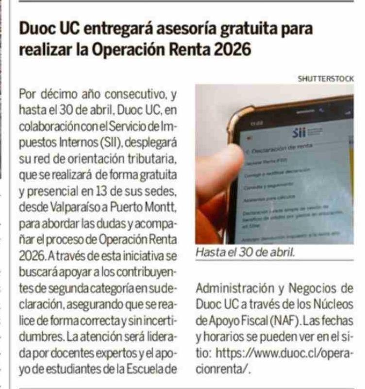 Duoc UC entregará asesoría gratuita para realizar la Operación Renta 2026