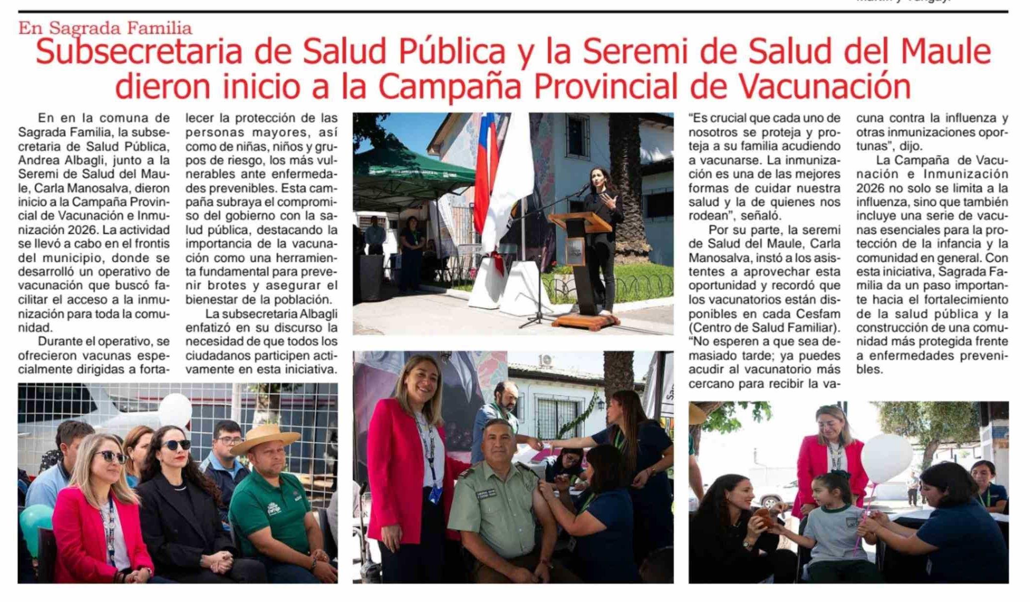 Subsecretaria de Salud Pública y la Seremi de Salud del Maule dieron inicio a la Campaña Provincial de Vacunación