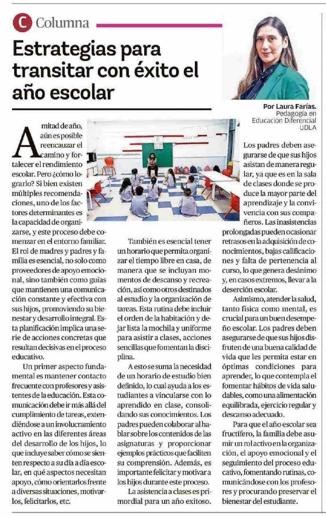 Columnas de Opinión: Estrategias para transitar con éxito el año escolar